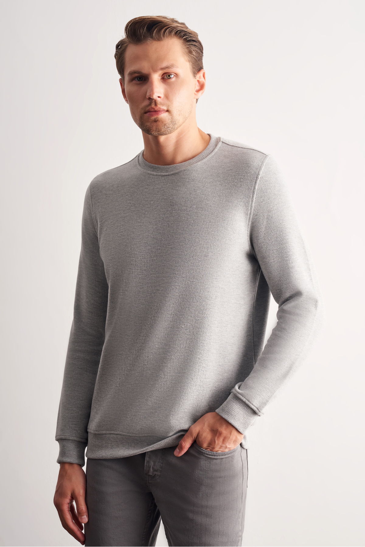 Gri Uzun Kol Bisiklet Yaka Düz Pamuklu Comfort Fit Sweatshirt 1013255150 Gri Uzun Kol Bisiklet Yaka Düz Pamuklu Comfort Fit Sweatshirt 1013255150 3XL