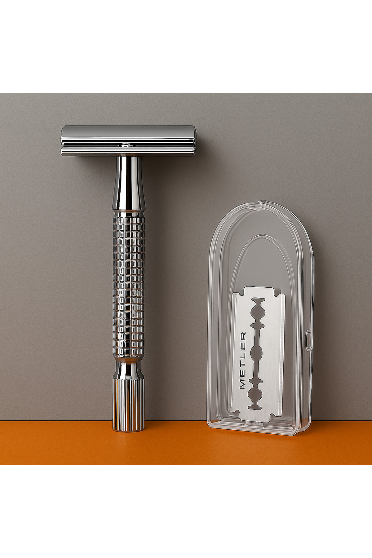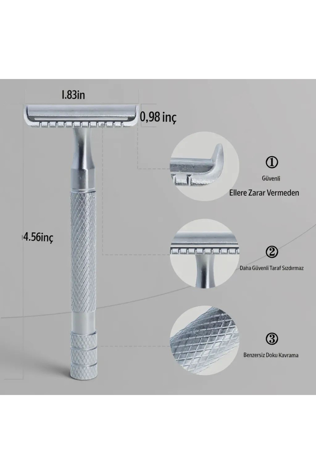 Profesyonel Jiletli Tıraş Aleti Gümüş Renk Metal Gövdeli Geleneksel Erkek Tıraş Aleti Profesyonel Jiletli Tıraş Aleti Gümüş Renk Metal Gövdeli Geleneksel Erkek Tıraş Aleti G-1304 تک سایز