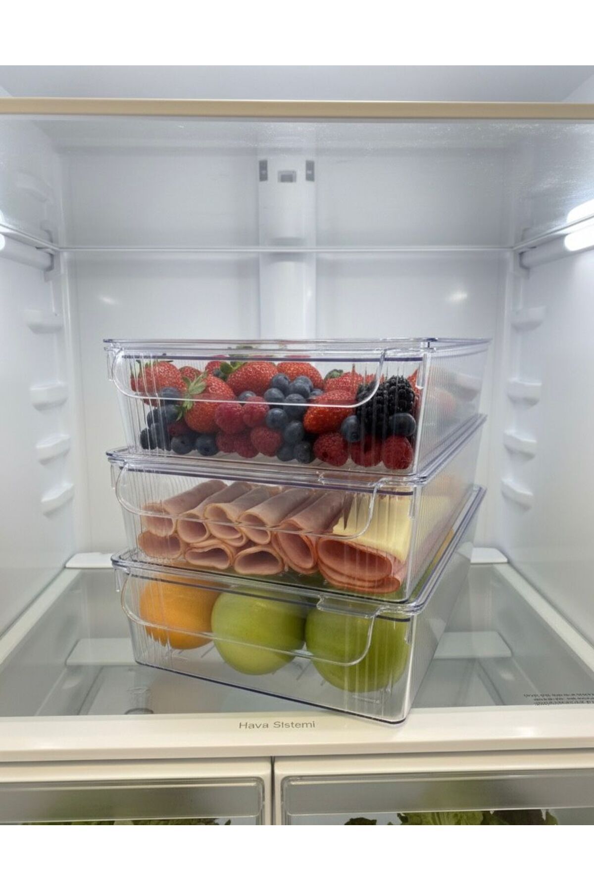 3'lü Kapaklı Şeffaf Buzdolabı Organizeri ve Saklama Kabı 3500ML 3'lü Kapaklı Şeffaf Buzdolabı Organizeri ve Saklama Kabı 3500ML OKY-273 تک سایز