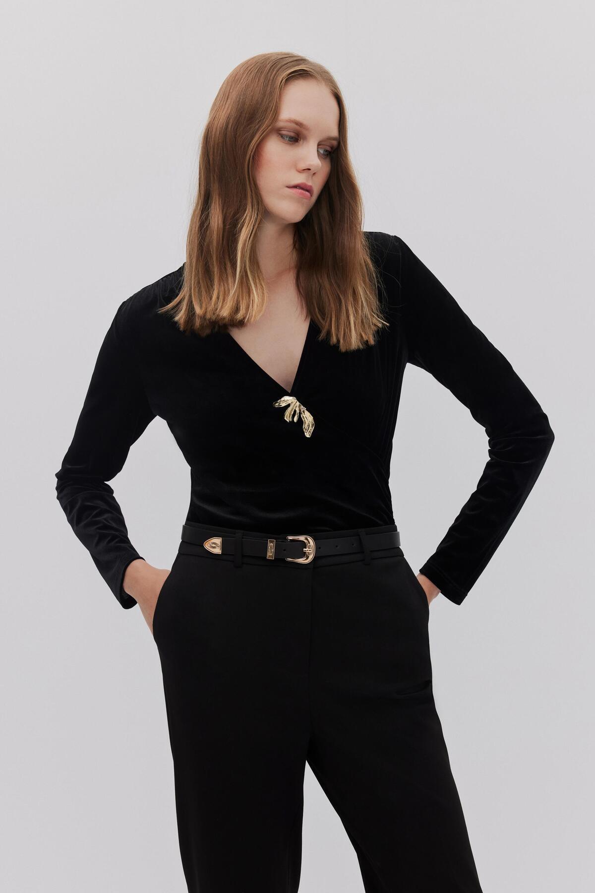 KADİFE OMZU BROŞLU BODYSUIT KADİFE OMZU BROŞLU BODYSUIT 4301-983-25K 42