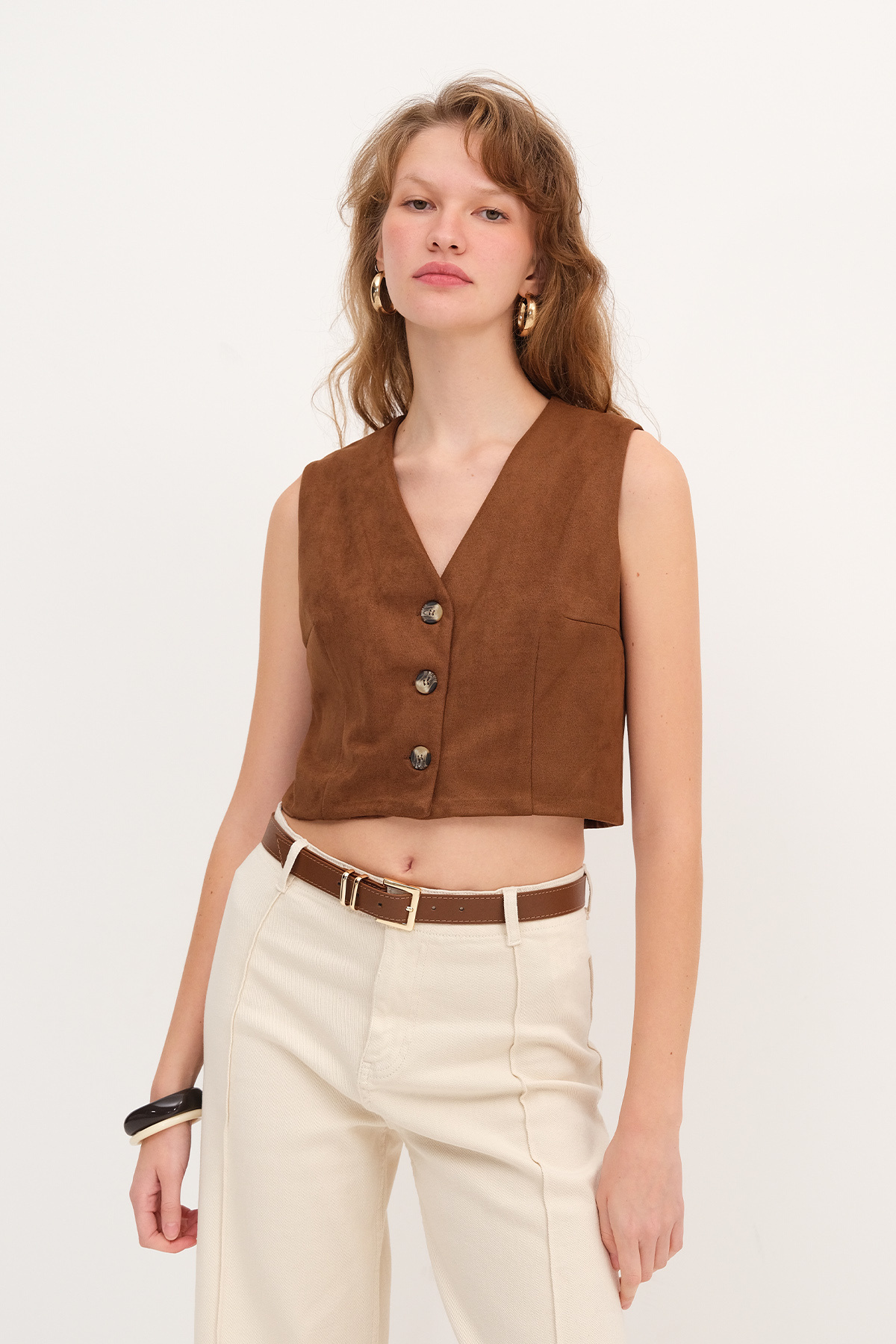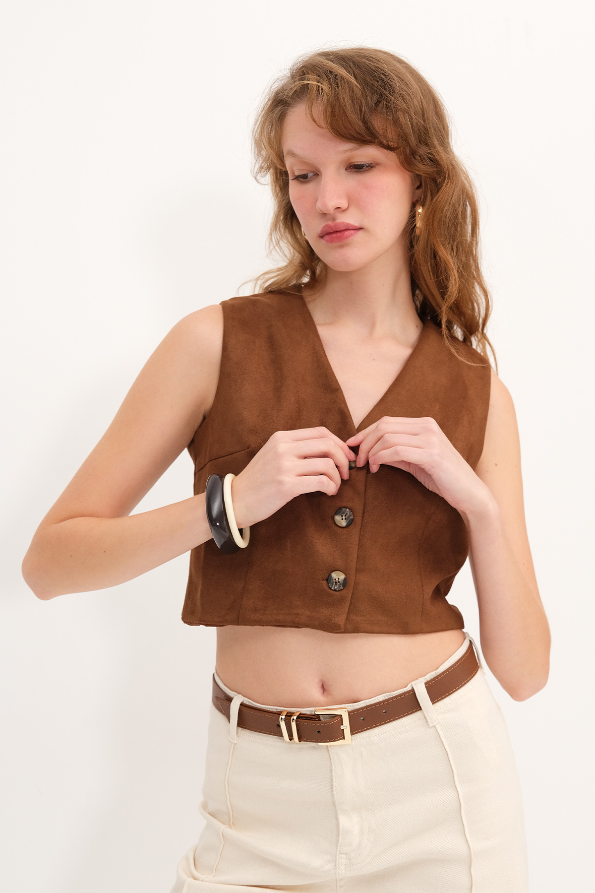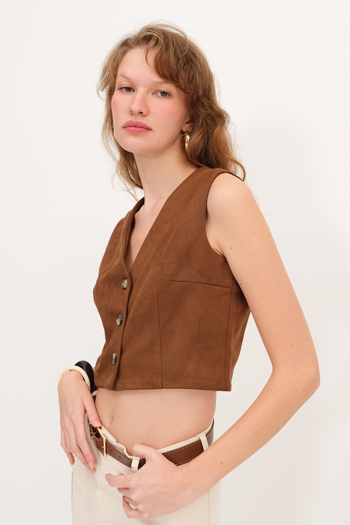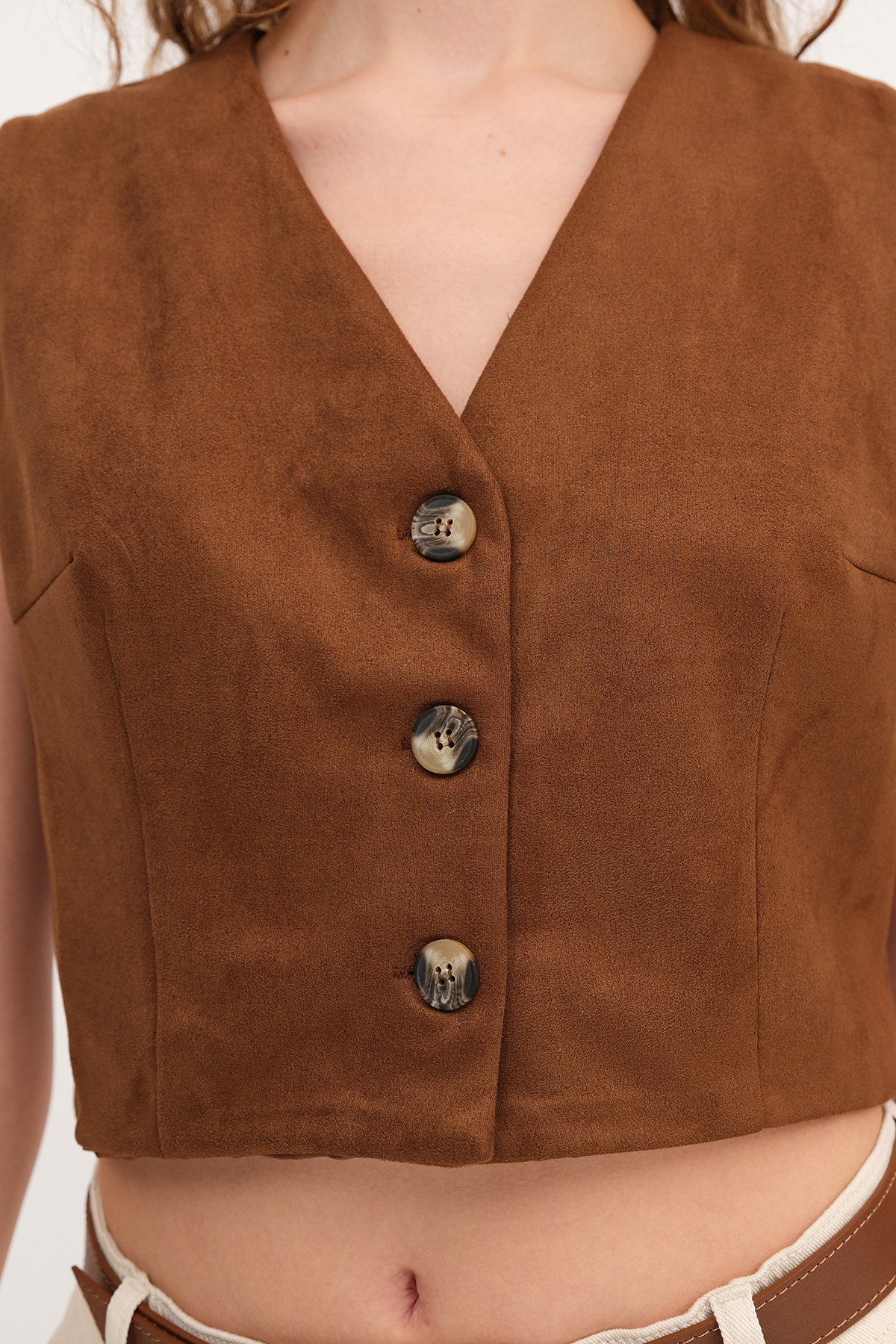 Düğmeli Süet Yelek Y17548 Düğmeli Süet Yelek Y17548 ADX-00036006 L