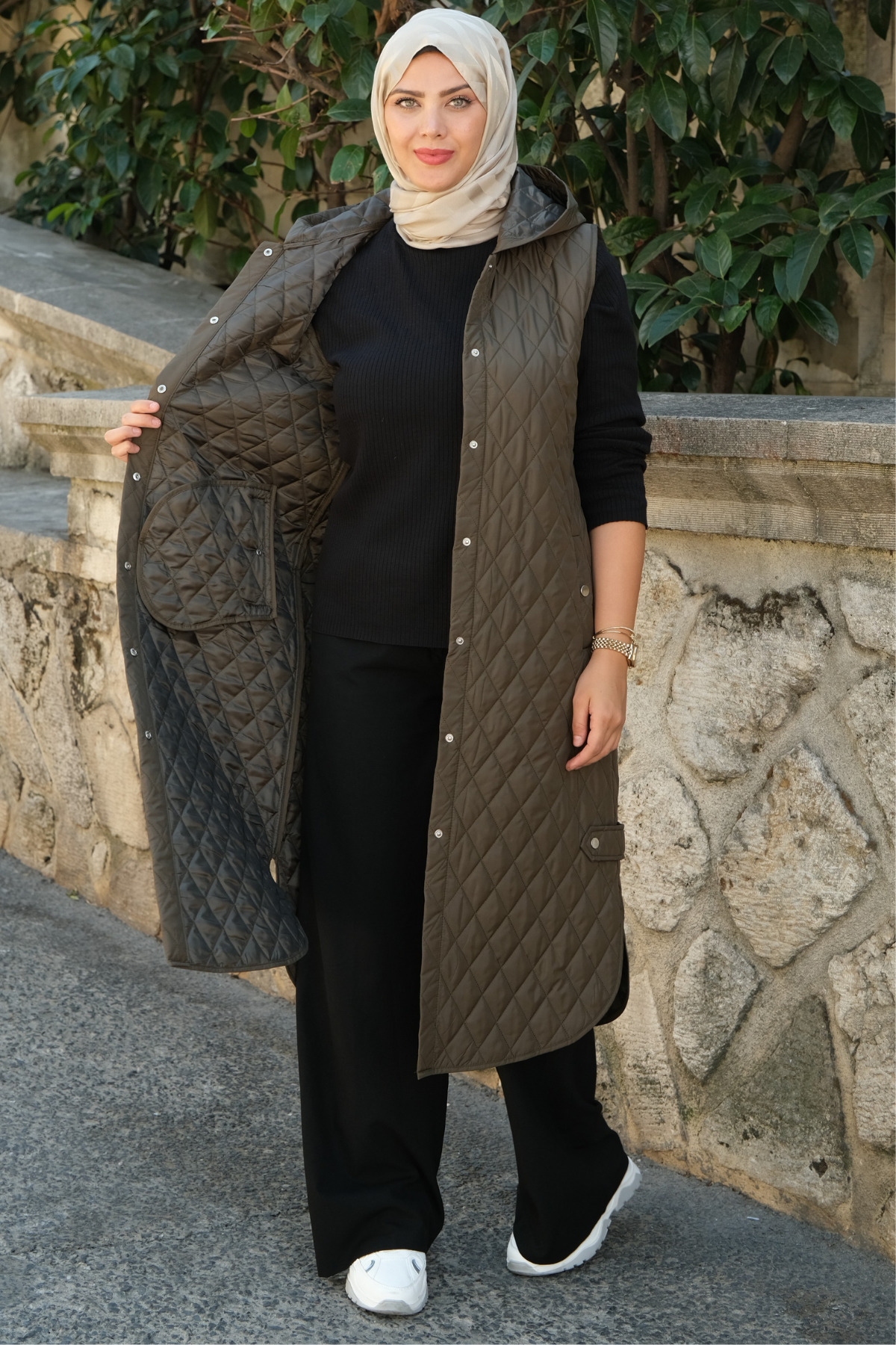 Kadın Haki Kapüşonlu Uzun Kapitone Yelek – Ultra Kaliteli Mikro Elyaf Dolgulu, Tost Astar Kadın Haki Kapüşonlu Uzun Kapitone Yelek – Ultra Kaliteli Mikro Elyaf Dolgulu, Tost Astar KY2025 42