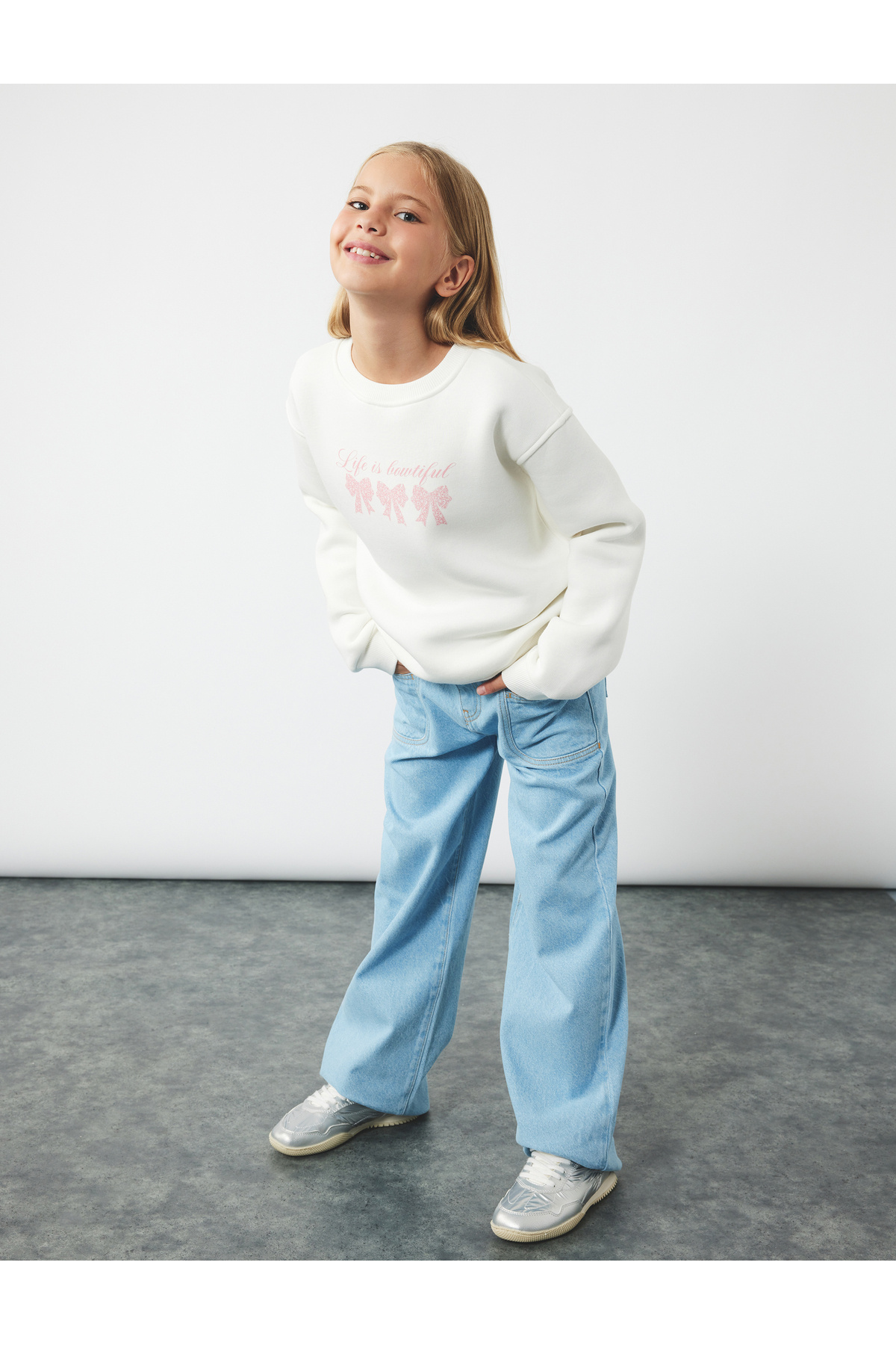 Pamuklu Rahat Kesim Zımba Detaylı Geniş Paça Denim Pantolon Pamuklu Rahat Kesim Zımba Detaylı Geniş Paça Denim Pantolon 6WKG40067AD 13-14 Yaş
