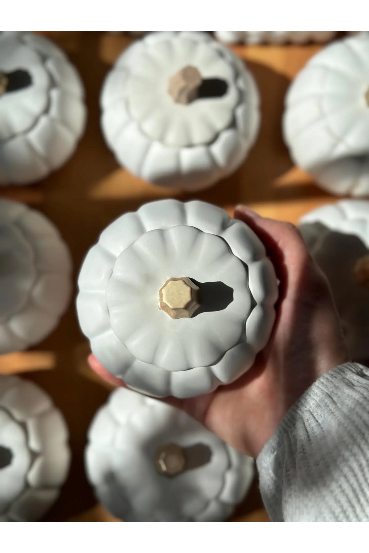 Halloween Beton Balkabağı Kasede Ahşap Fitilli, Dekoratif Mum Halloween Beton Balkabağı Kasede Ahşap Fitilli, Dekoratif Mum mum2 تک سایز