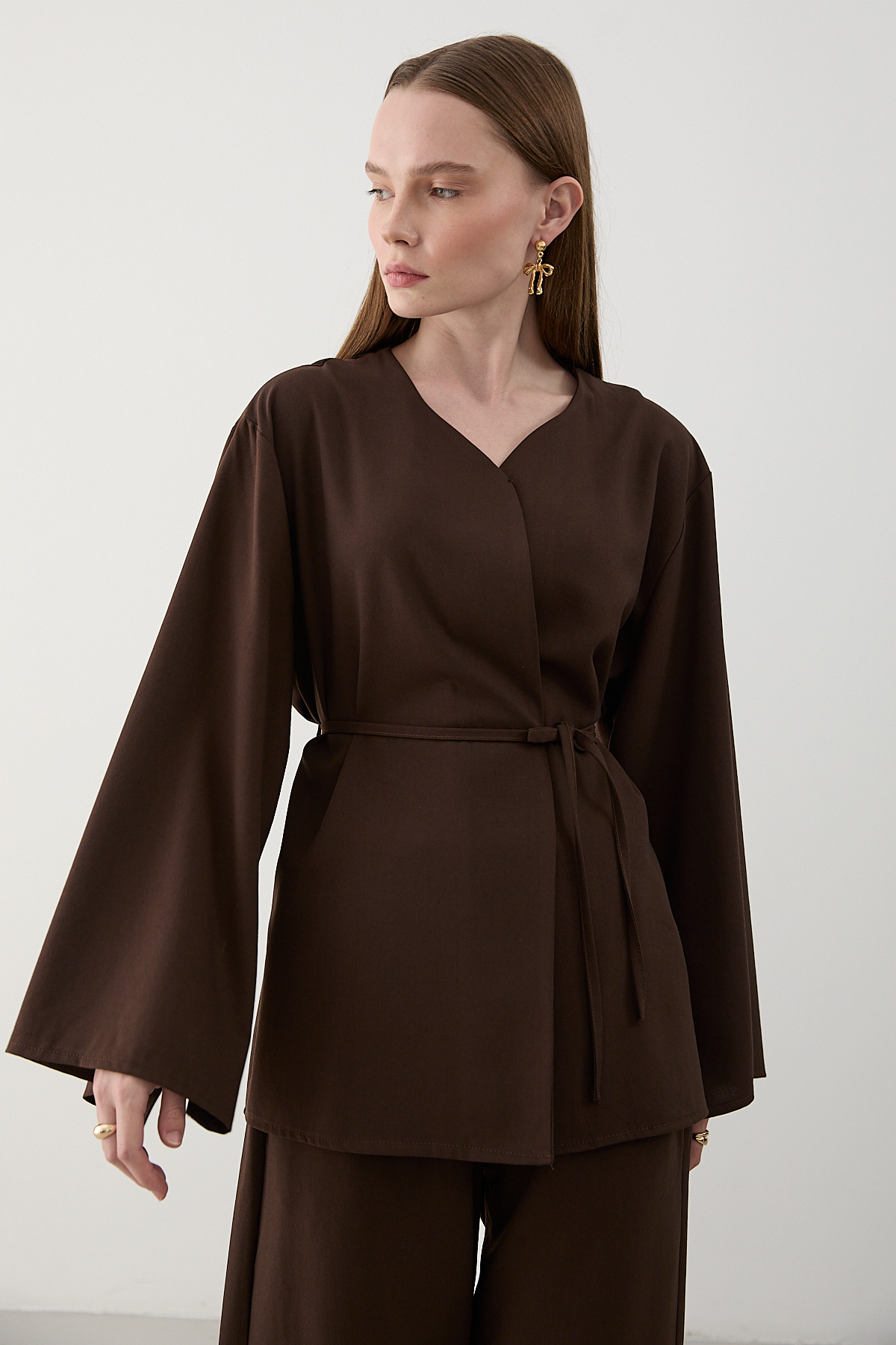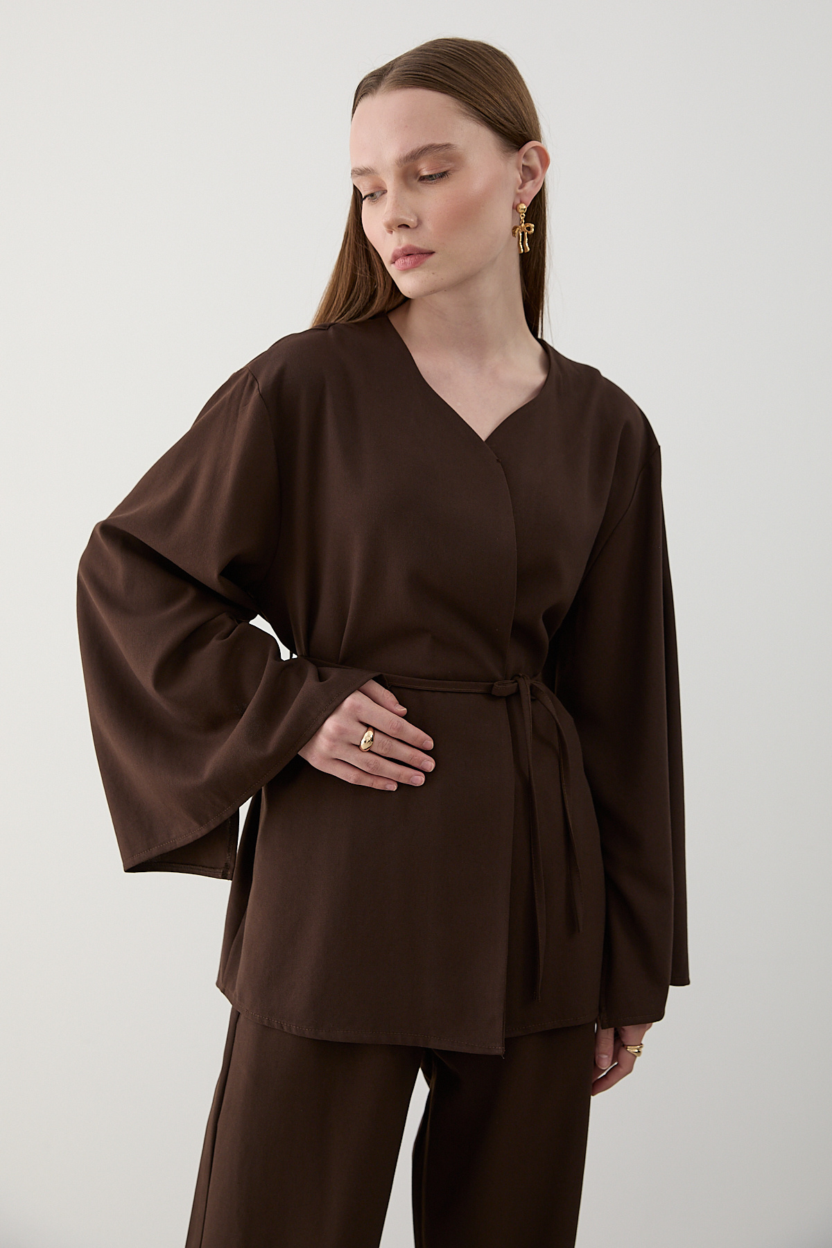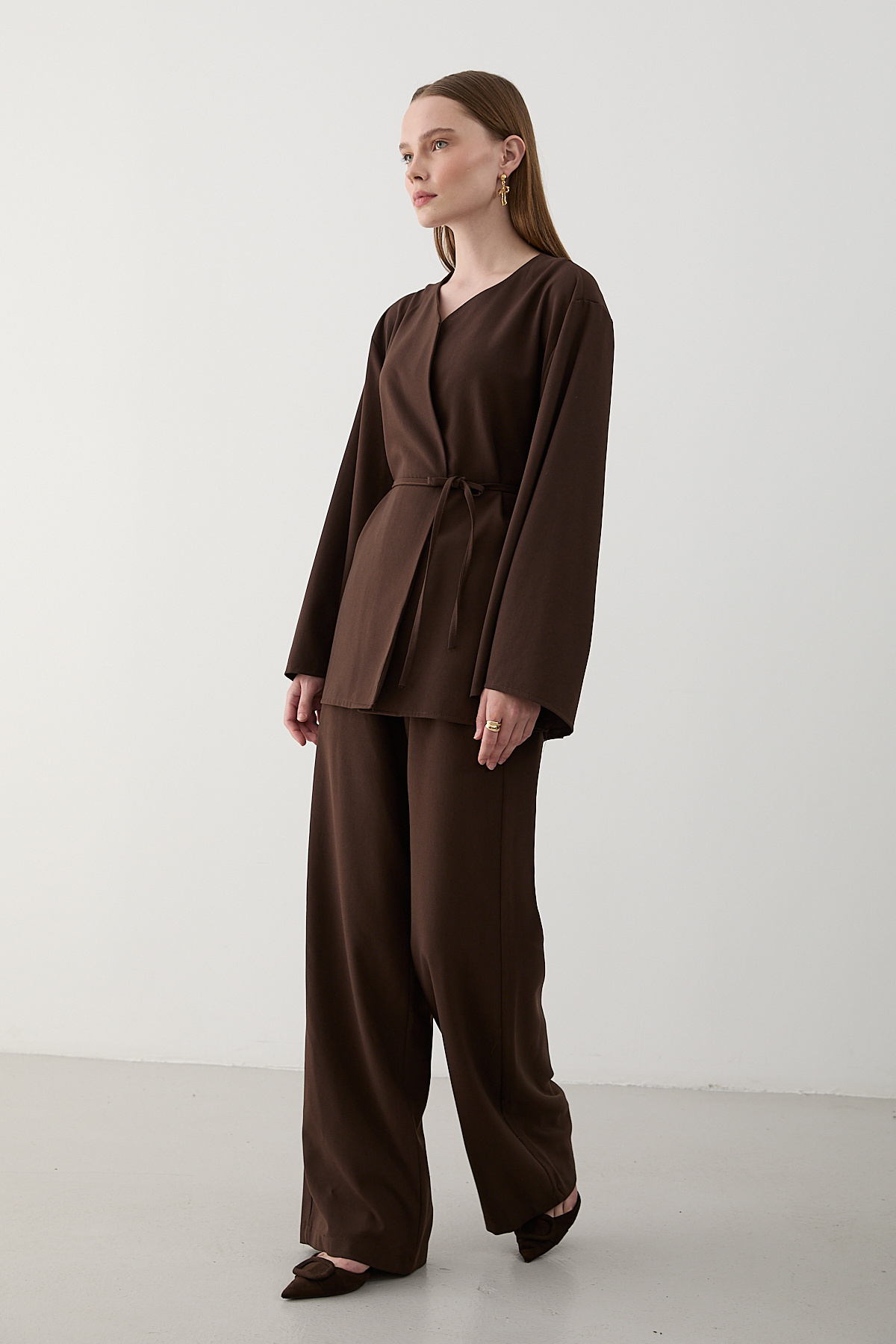 Kahverengi İpli Kimono Takım - 8864 Kahverengi İpli Kimono Takım - 8864 690-ef-8864 XL