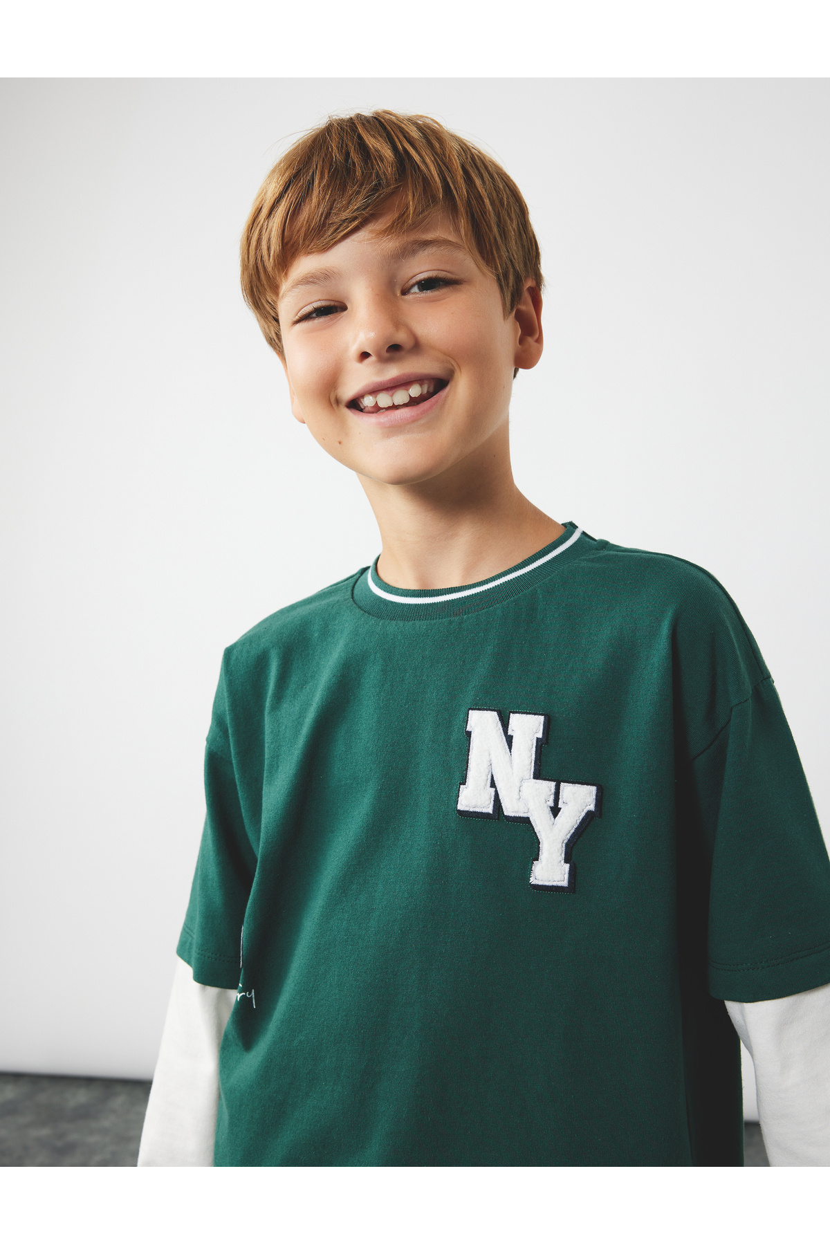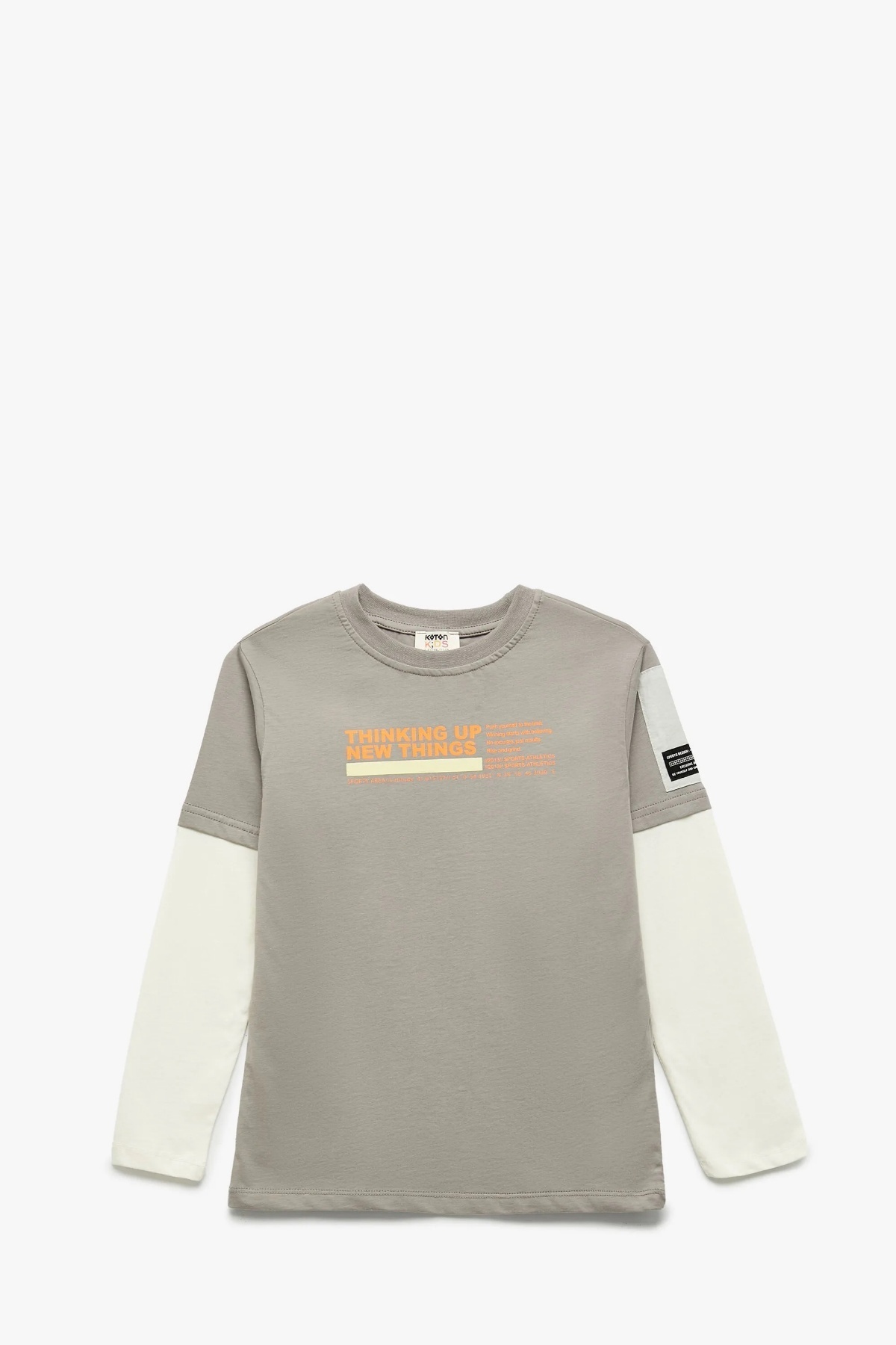 Pamuklu Uzun Kollu Bisiklet Yaka Baskılı Tişört Pamuklu Uzun Kollu Bisiklet Yaka Baskılı Tişört 6WKB10435TK 11-12 Yaş