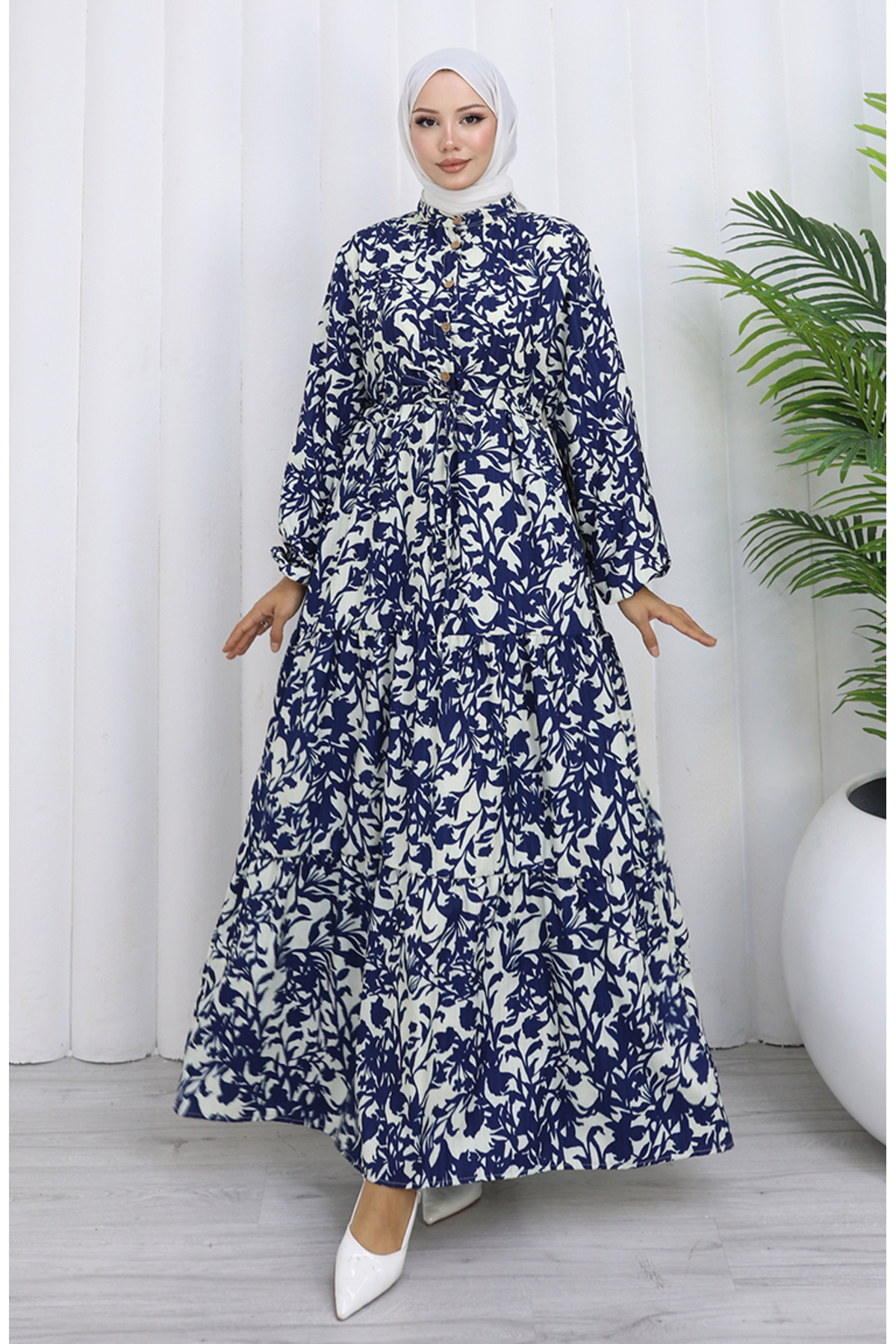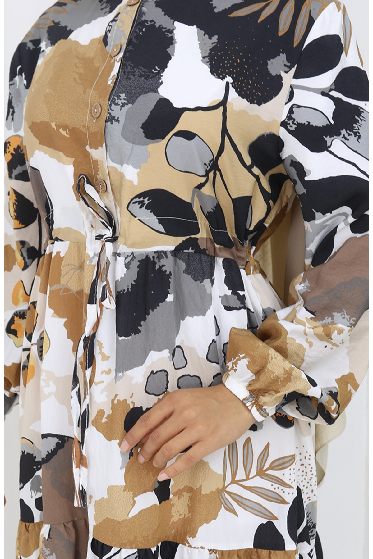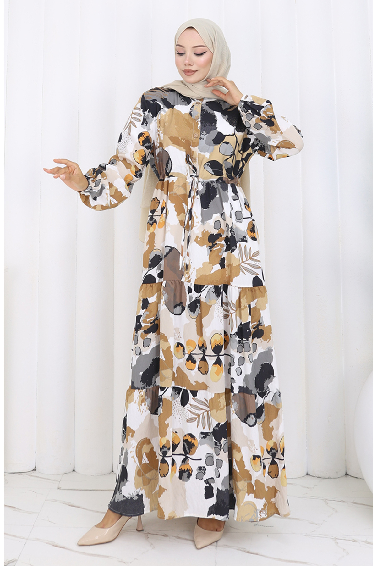 Modal Kumaş Beli Bağcıklı Desenli Elbise 0161-04 Sütlü Kahve Modal Kumaş Beli Bağcıklı Desenli Elbise 0161-04 Sütlü Kahve YNAZRA0161 52-54