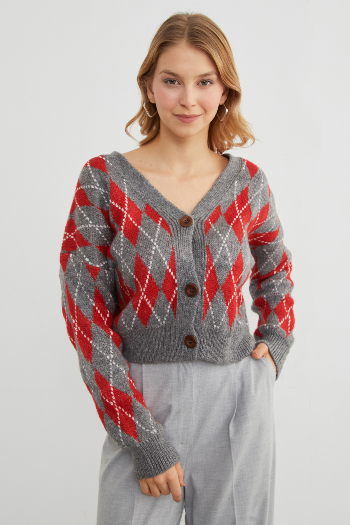 Baklava Desenli Düğmeli Triko Hırka Baklava Desenli Düğmeli Triko Hırka 25KGB1756129785 M/L