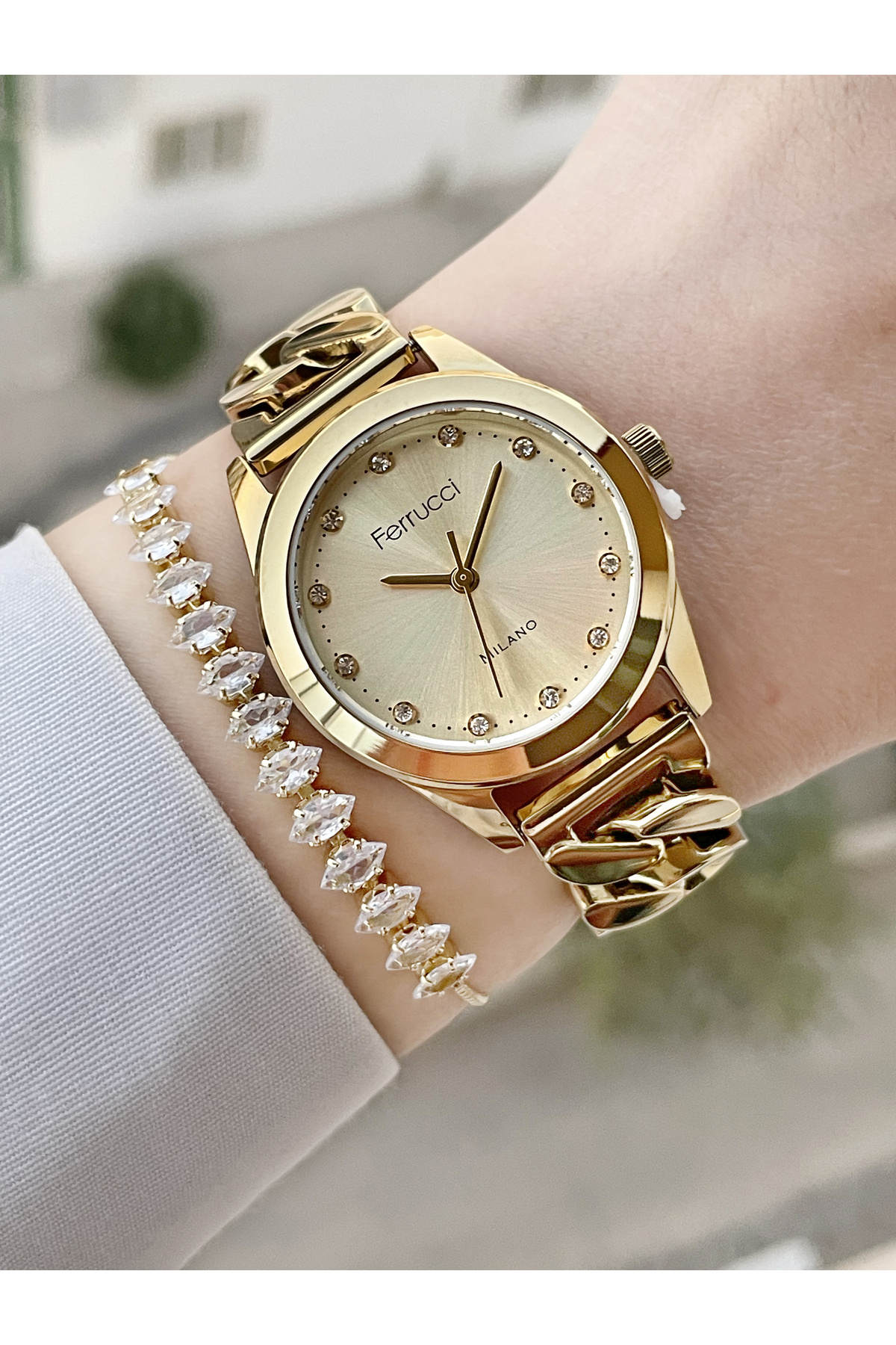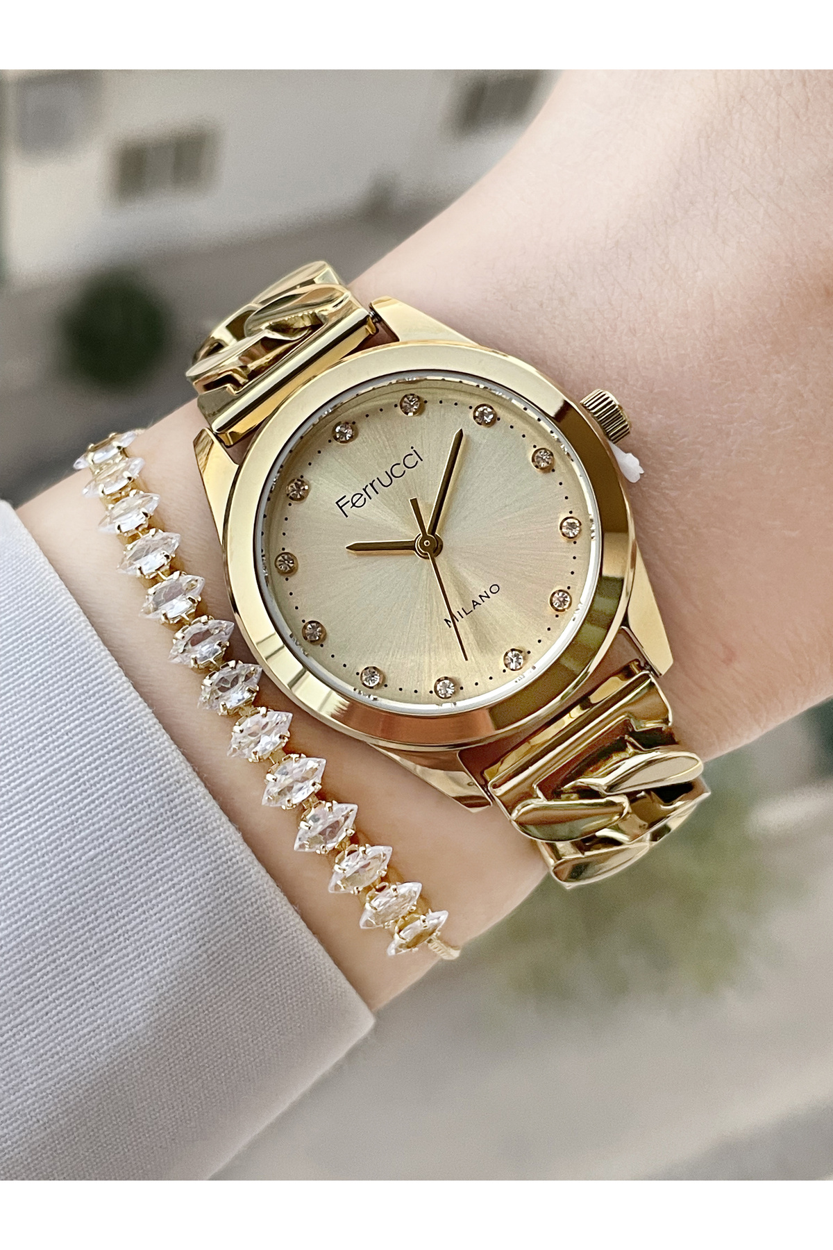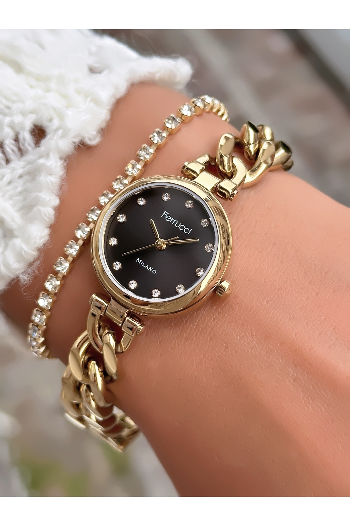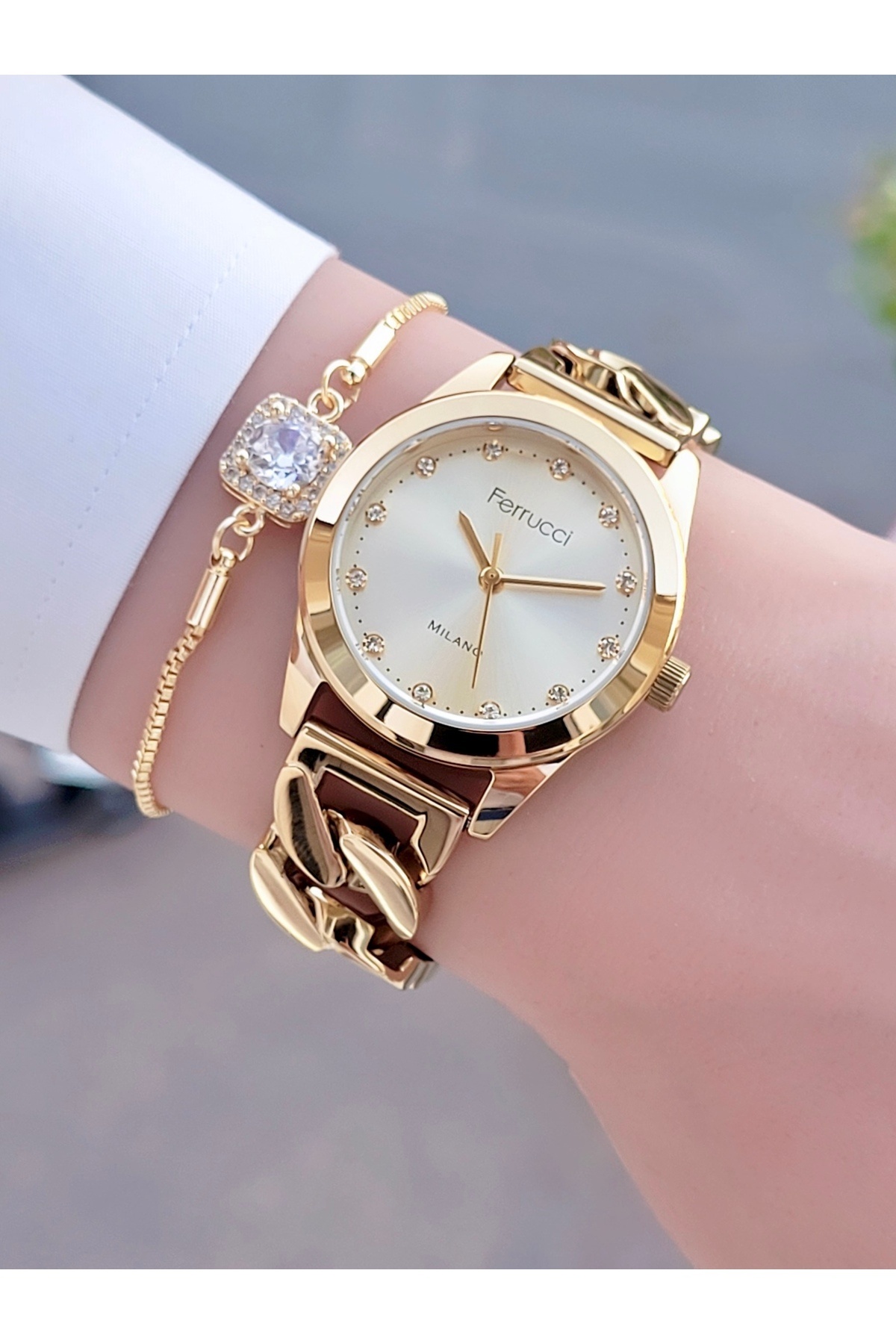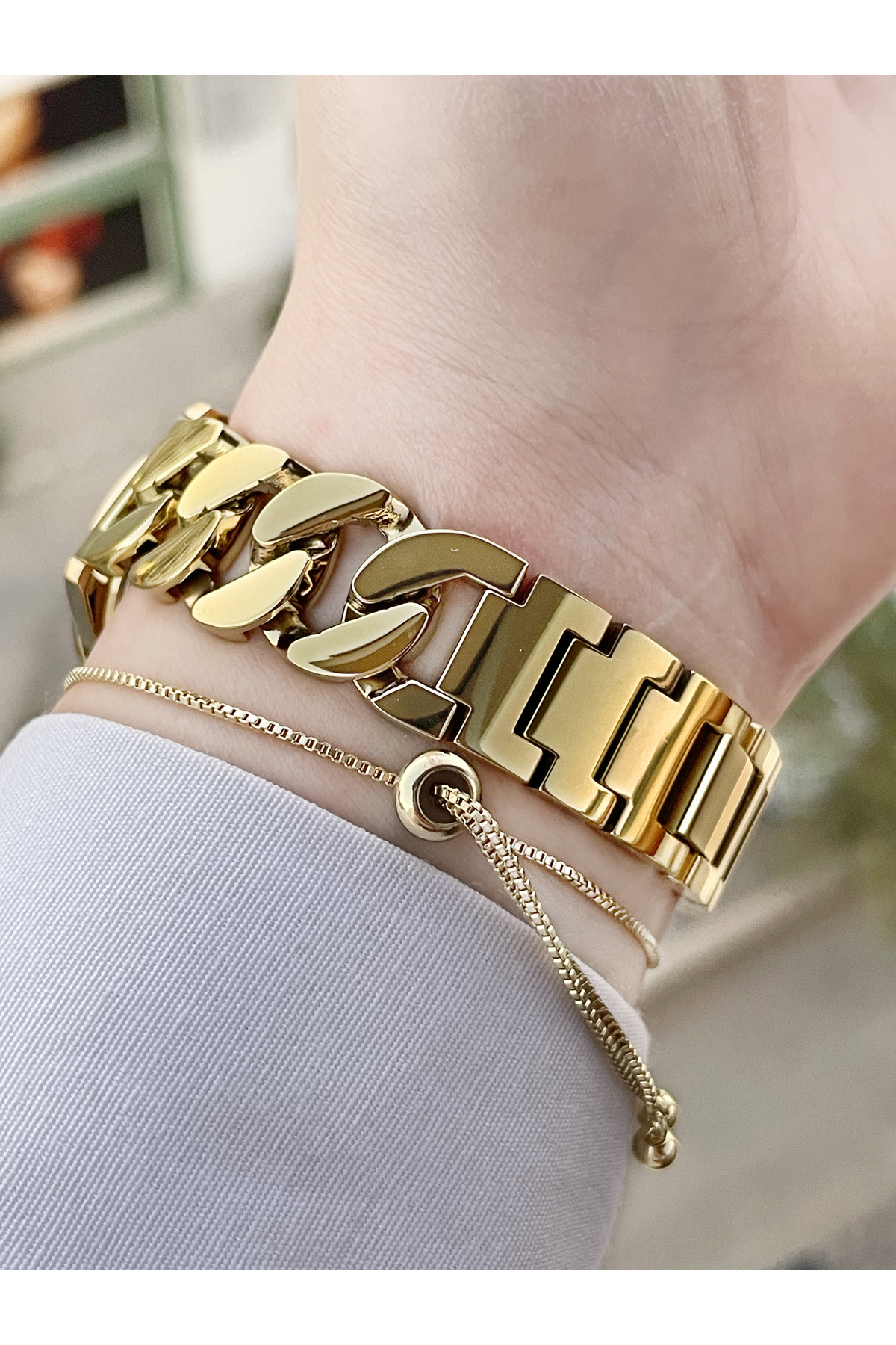 Kordonu Zincir Kadın Kol Saati Ve Bileklik Kordonu Zincir Kadın Kol Saati Ve Bileklik FC 03599 تک سایز