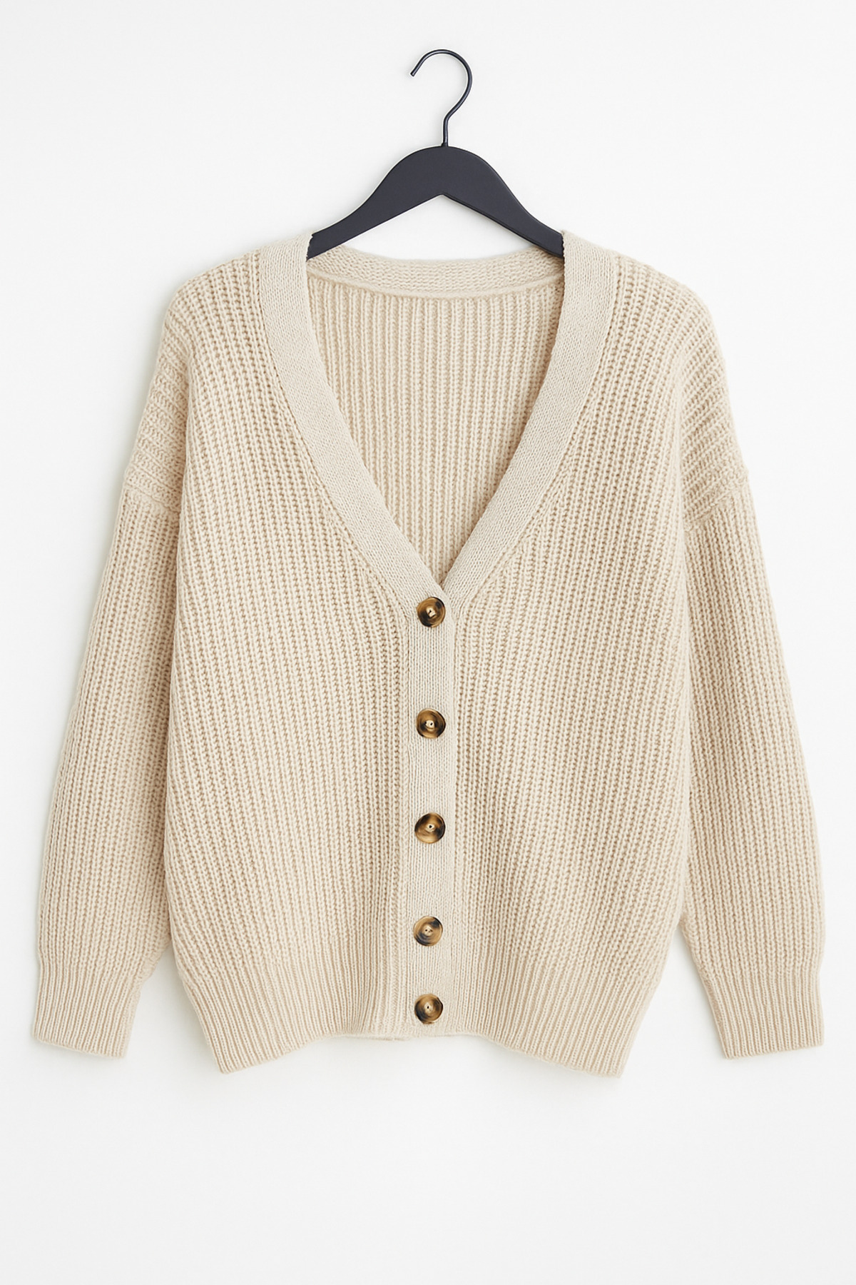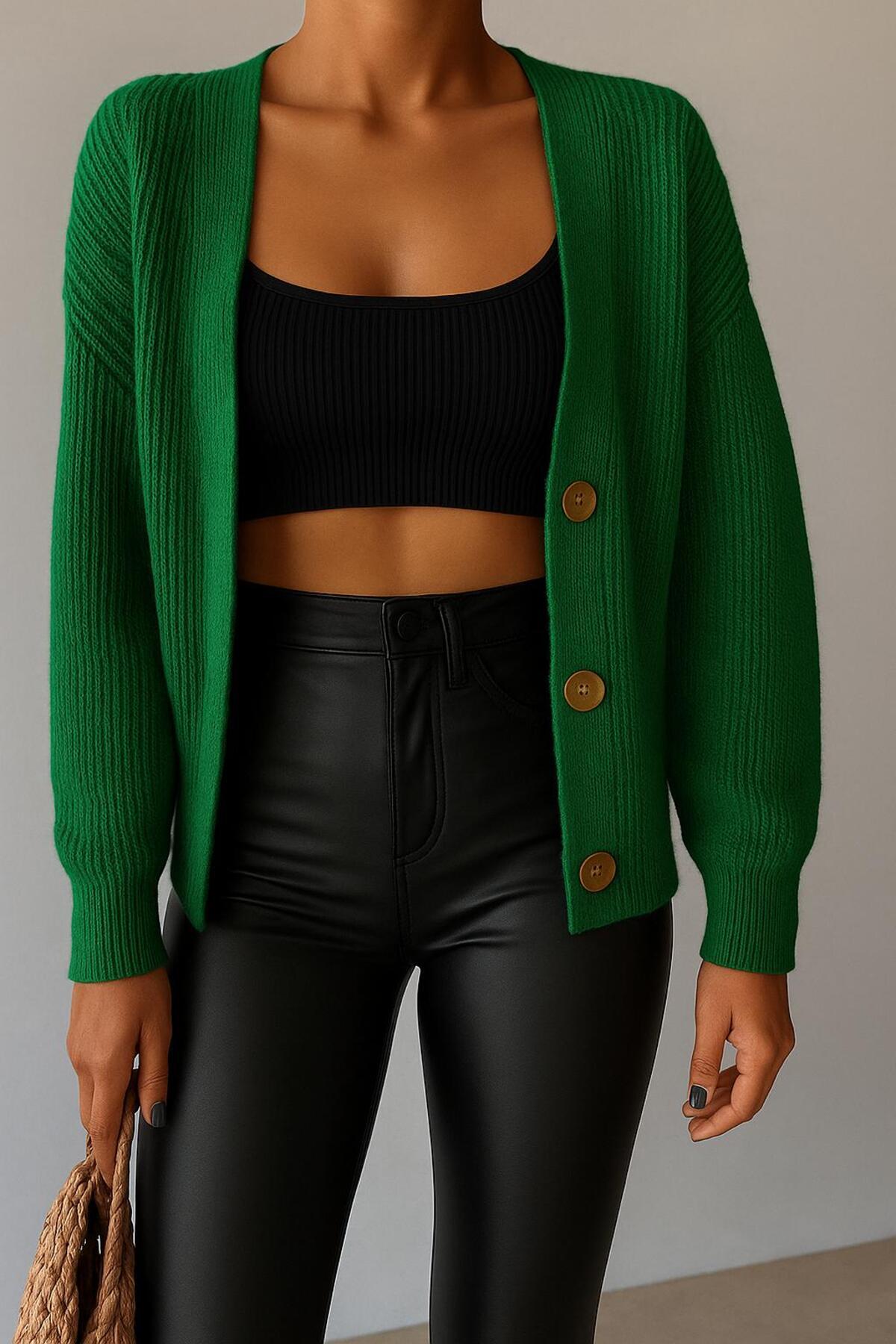 Kadın V Yaka Düğmeli Oversize Triko Hırka Kadın V Yaka Düğmeli Oversize Triko Hırka TRKHRK XL