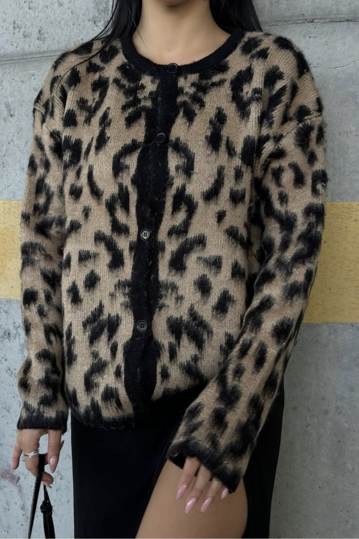 Leopar Desenli Bisiklet Yaka Triko Hırka AW25HI0040 Leopar Desenli Bisiklet Yaka Triko Hırka AW25HI0040 S/M