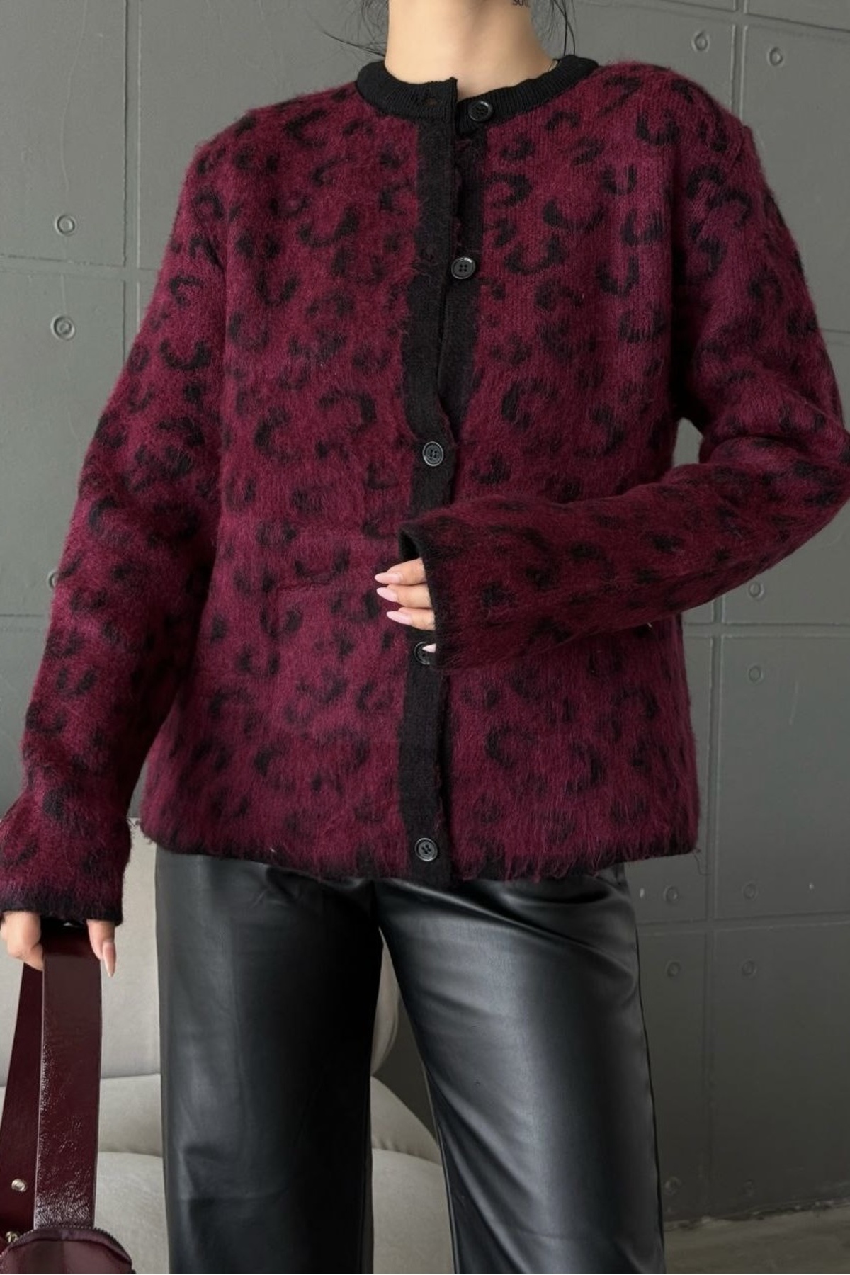 Leopar Desenli Bisiklet Yaka Triko Hırka AW25HI0040 Leopar Desenli Bisiklet Yaka Triko Hırka AW25HI0040 S/M