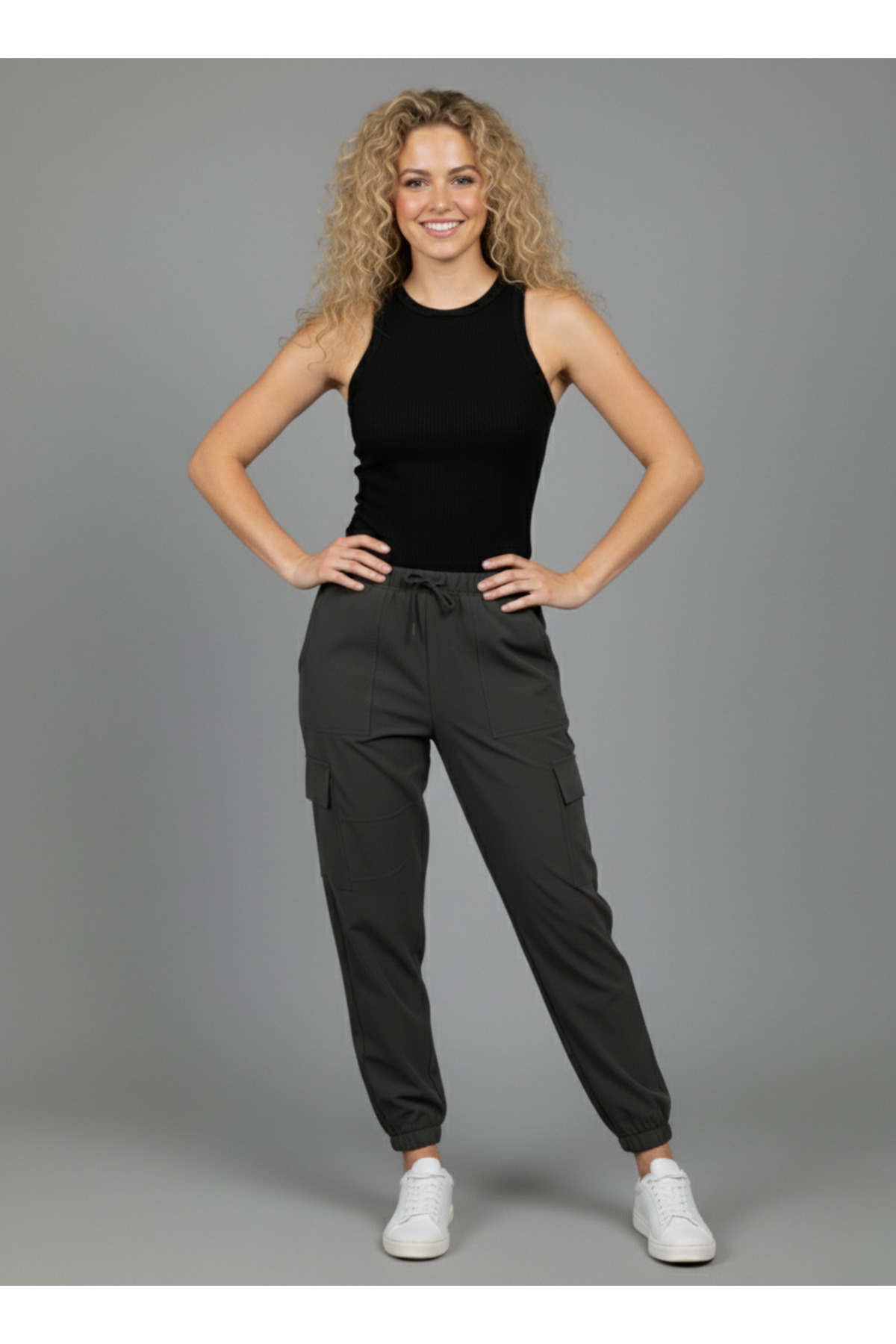Kadın Siyah Kargo Cepli Beli Lastikli Pantolon Kadın Siyah Kargo Cepli Beli Lastikli Pantolon MRK-Pantolon-10000 2XL