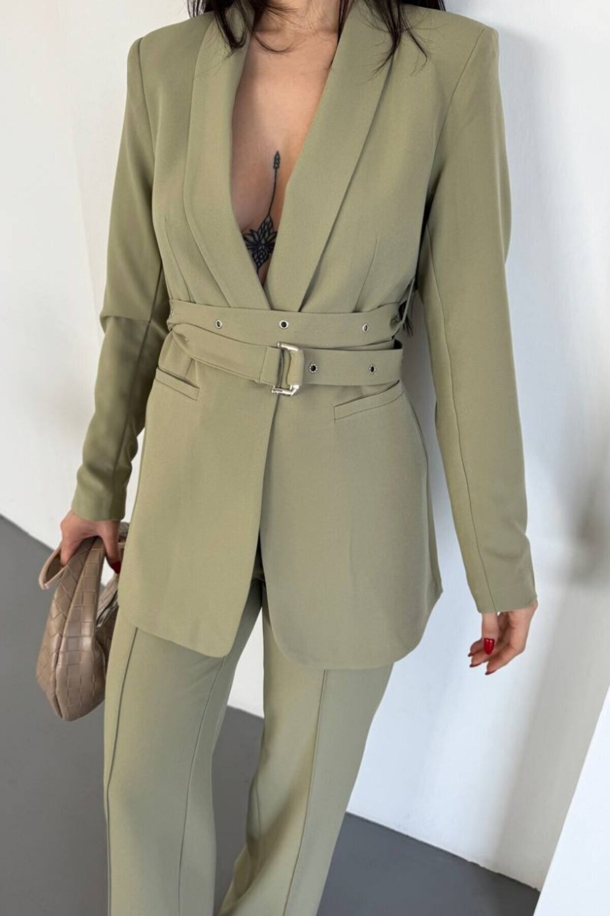 Kadın İkili Alt Üst Takım Kemerli Blazer Ceket Bol Paça Pantolon Takım Kadın İkili Alt Üst Takım Kemerli Blazer Ceket Bol Paça Pantolon Takım PRA-13125862-085491 42