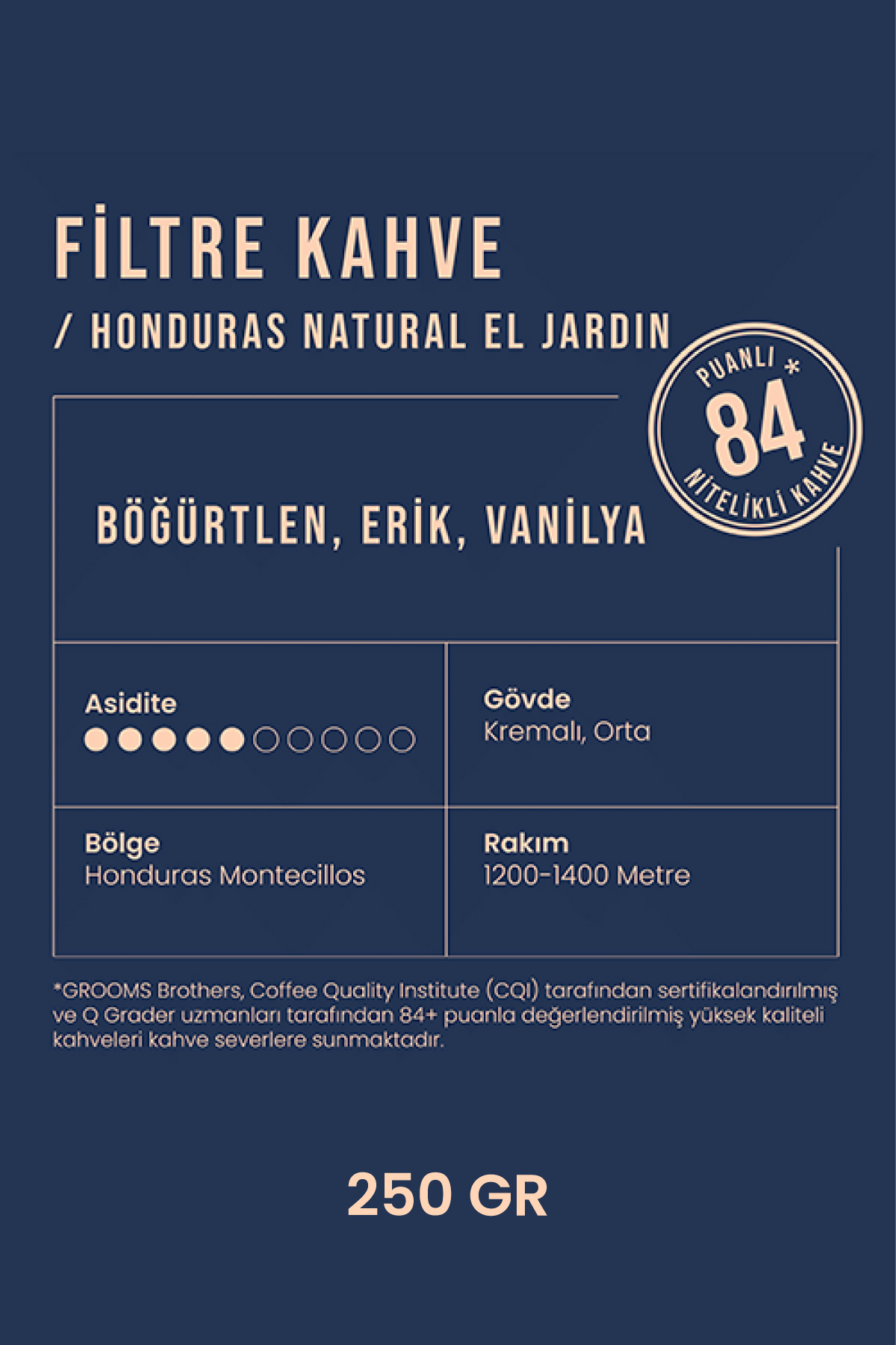 Öğütülmüş Honduras Nitelikli Filtre Kahve 250g Natural El Jardin Öğütülmüş Honduras Nitelikli Filtre Kahve 250g Natural El Jardin 1-250 Coffee Böğürtlen Erik Vanilya Öğüt Filtre Kahve