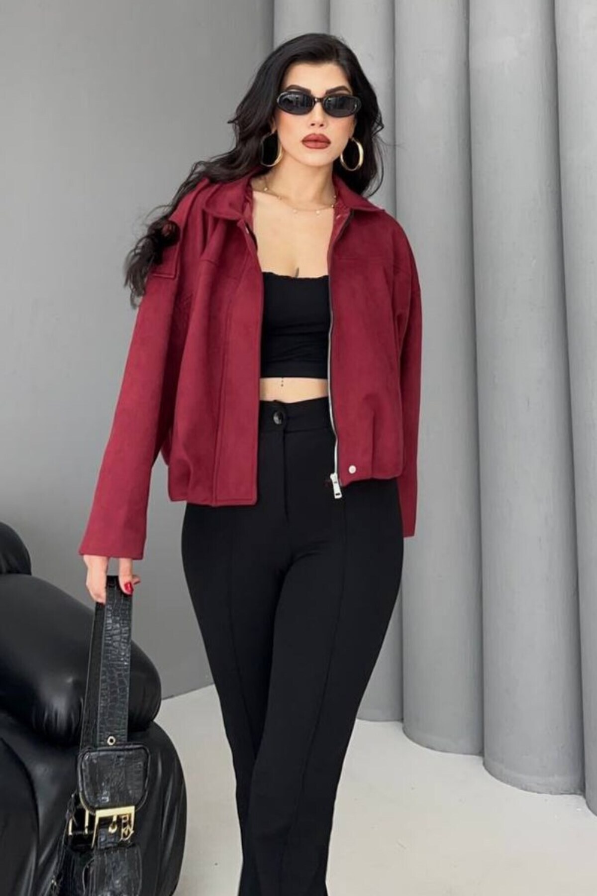 Kadın Mont Kısa Oversize Süet Fermuarlı Gömlek Yaka Düşük Omuz Ceket Kadın Mont Kısa Oversize Süet Fermuarlı Gömlek Yaka Düşük Omuz Ceket PRA-13127883-002895 42