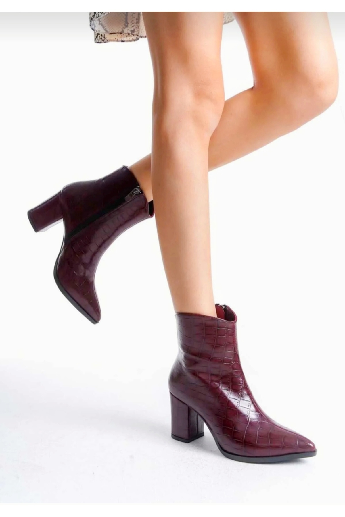 Kadın Klasik Kroko Sivri Burun Kalın Topuklu Yandan Fermuarlı Bot Kadın Klasik Kroko Sivri Burun Kalın Topuklu Yandan Fermuarlı Bot 777 40