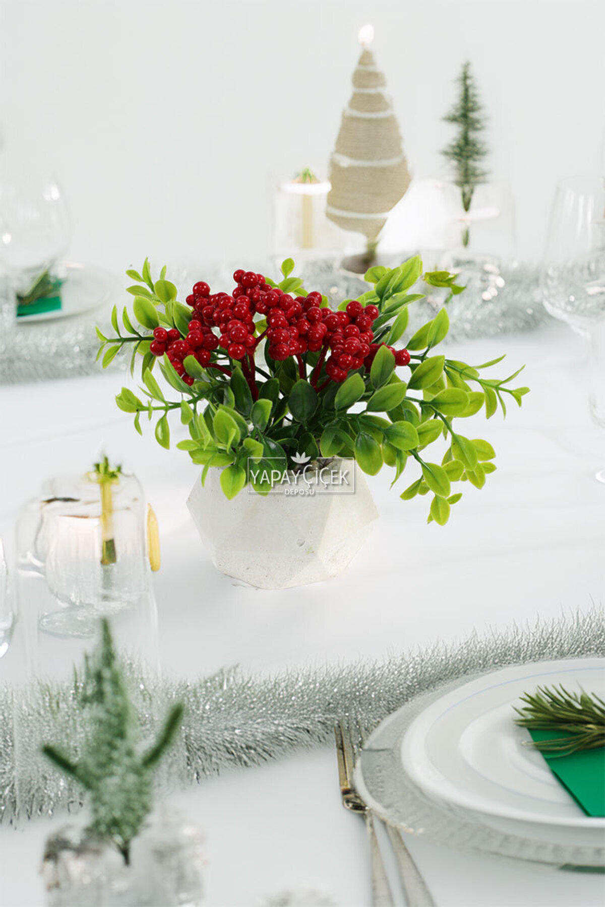 Beton Saksıda Yapay Kokina Mini Yeni Yıl Masa Dekoru Beton Saksıda Yapay Kokina Mini Yeni Yıl Masa Dekoru YPCCK-F-776 تک سایز