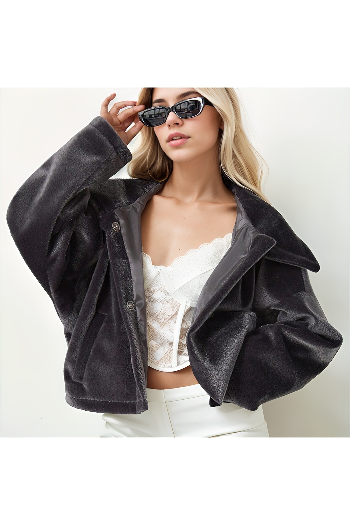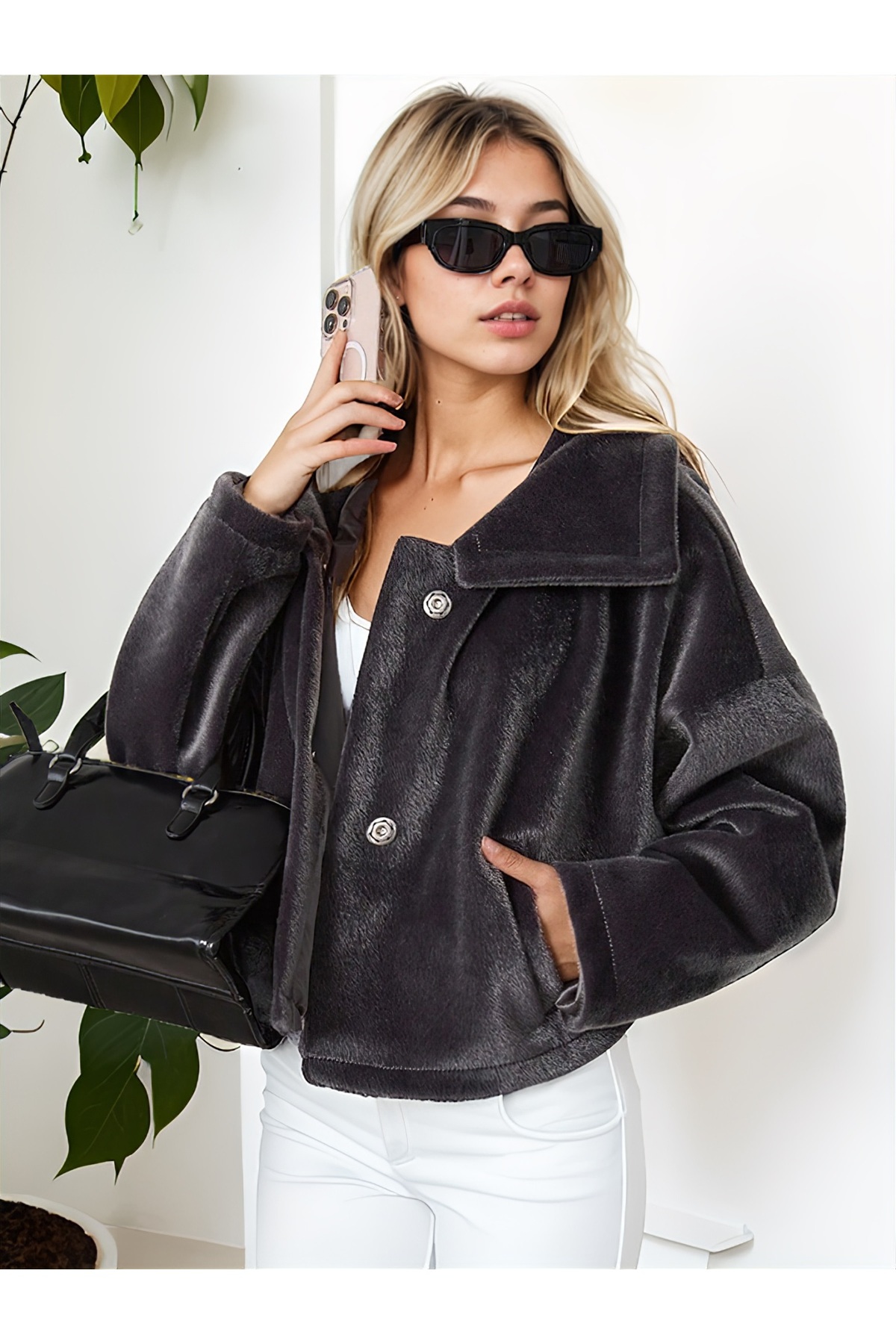 Kadın Yeni Sezon Oversize Yarasa Kol Kısa Mont Astarlı Fox Kumas Kadın Yeni Sezon Oversize Yarasa Kol Kısa Mont Astarlı Fox Kumas M17372 L