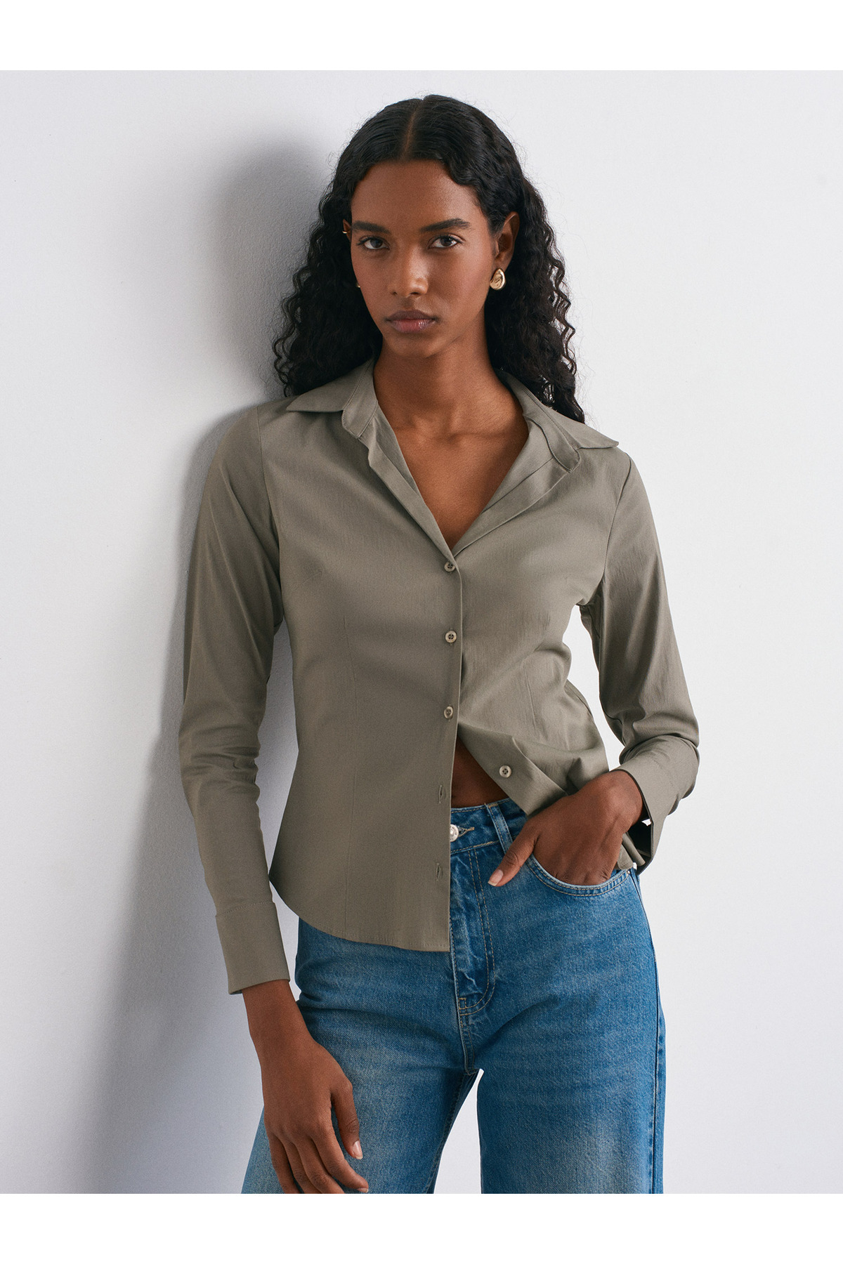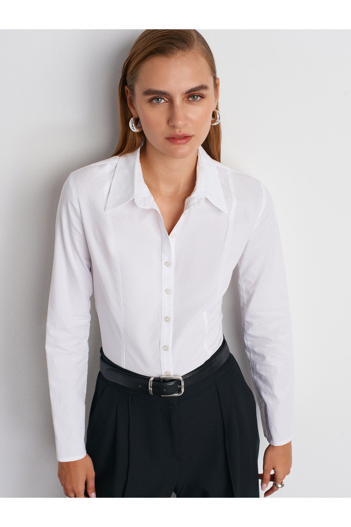50517 Çan Kollu Vücuda Oturan Gömlek-Beyaz 50517 Çan Kollu Vücuda Oturan Gömlek-Beyaz 101A50517 40