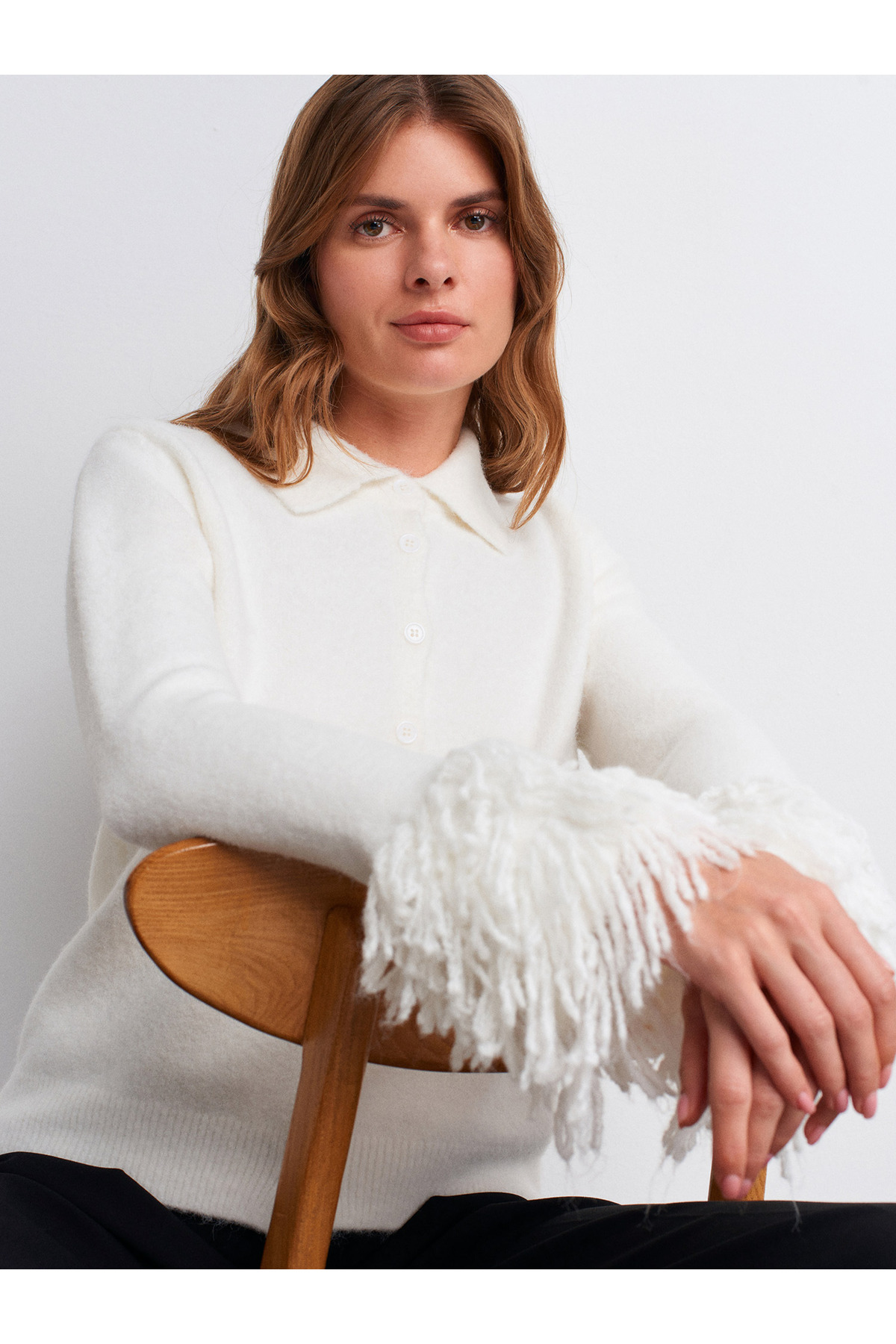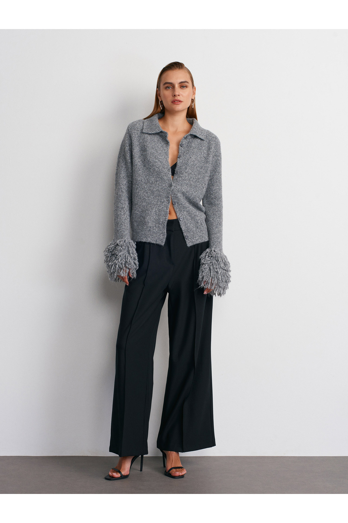 60992 Kolu Püsküllü Triko Hırka-Füme M. 60992 Kolu Püsküllü Triko Hırka-Füme M. 101A60992 Standart