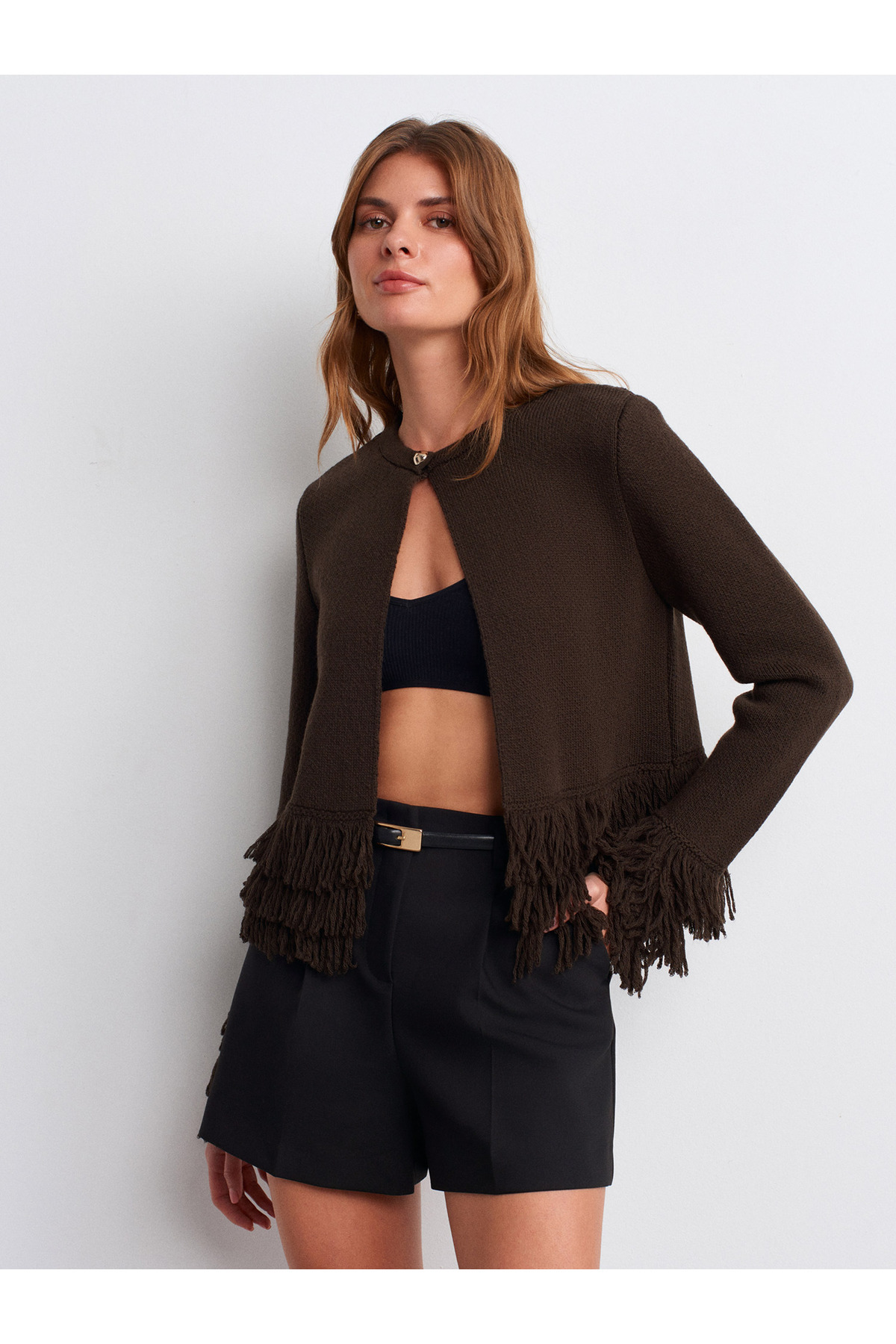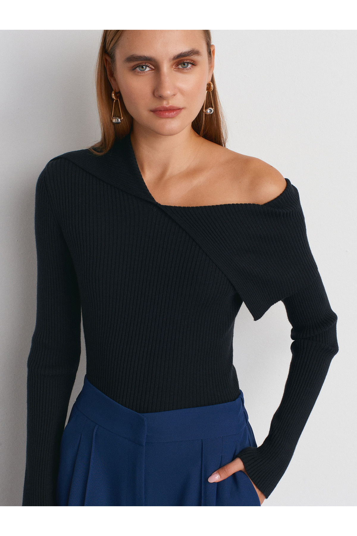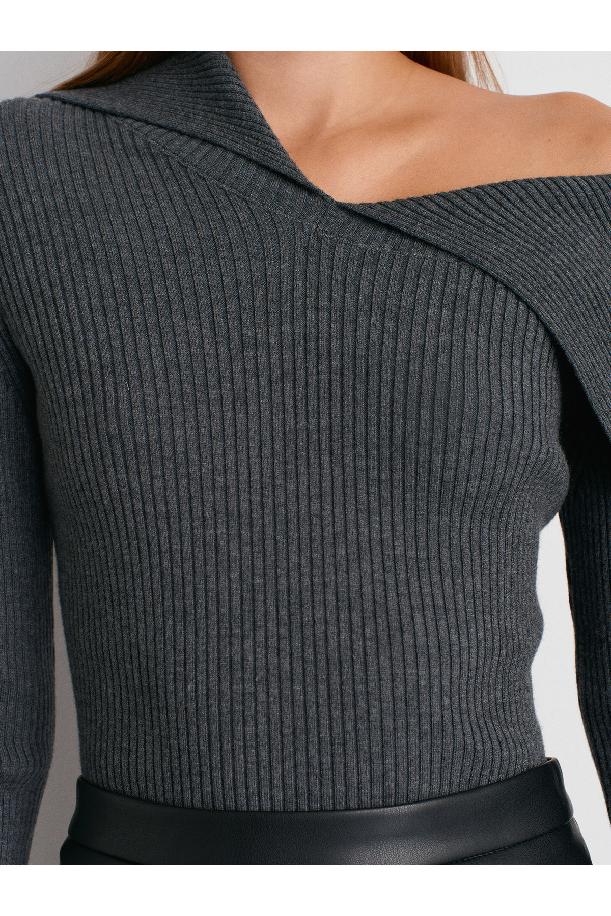 10815 Asimetrik Yaka Yünlü Fitilli Triko Kazak-Füme M. 10815 Asimetrik Yaka Yünlü Fitilli Triko Kazak-Füme M. 101A10815 Standart