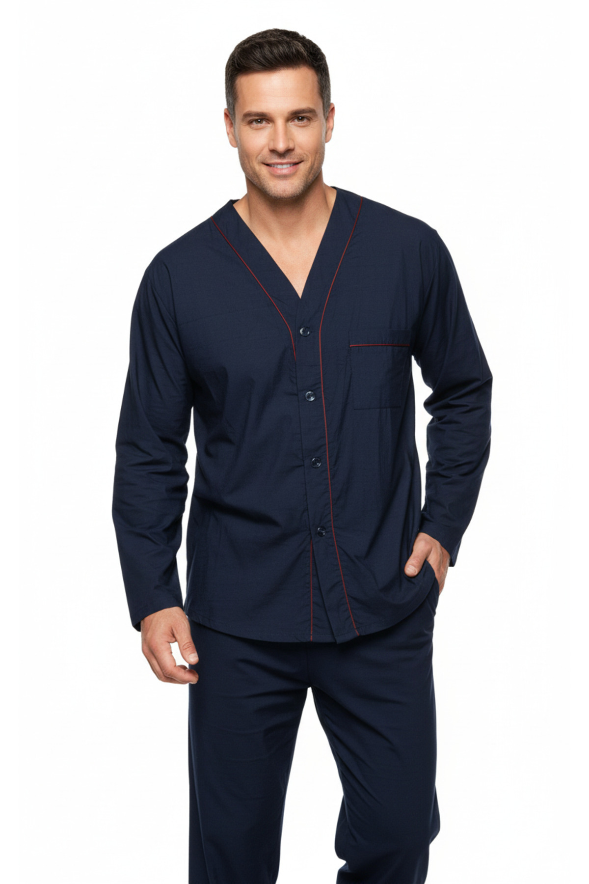 Erkek Pijama Takımı %100 İpek Kumaş Klasik Model Cepli Rahat Tam Kalıp Erkek Pijama Takımı %100 İpek Kumaş Klasik Model Cepli Rahat Tam Kalıp OPEPT26PIEROMOD96 L