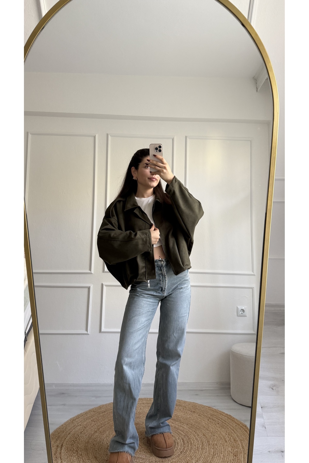 Oversize Bomber Süet Haki Ceket Oversize Bomber Süet Haki Ceket OBSC222 L