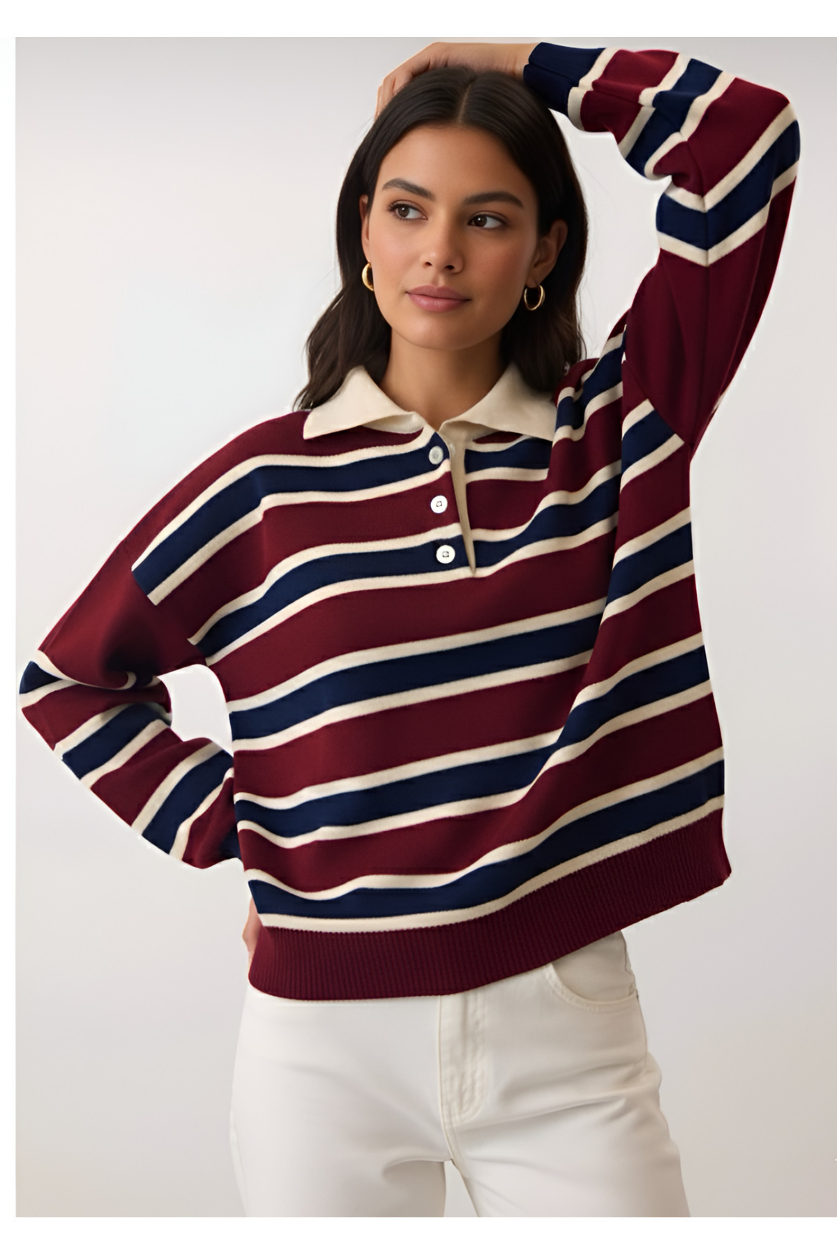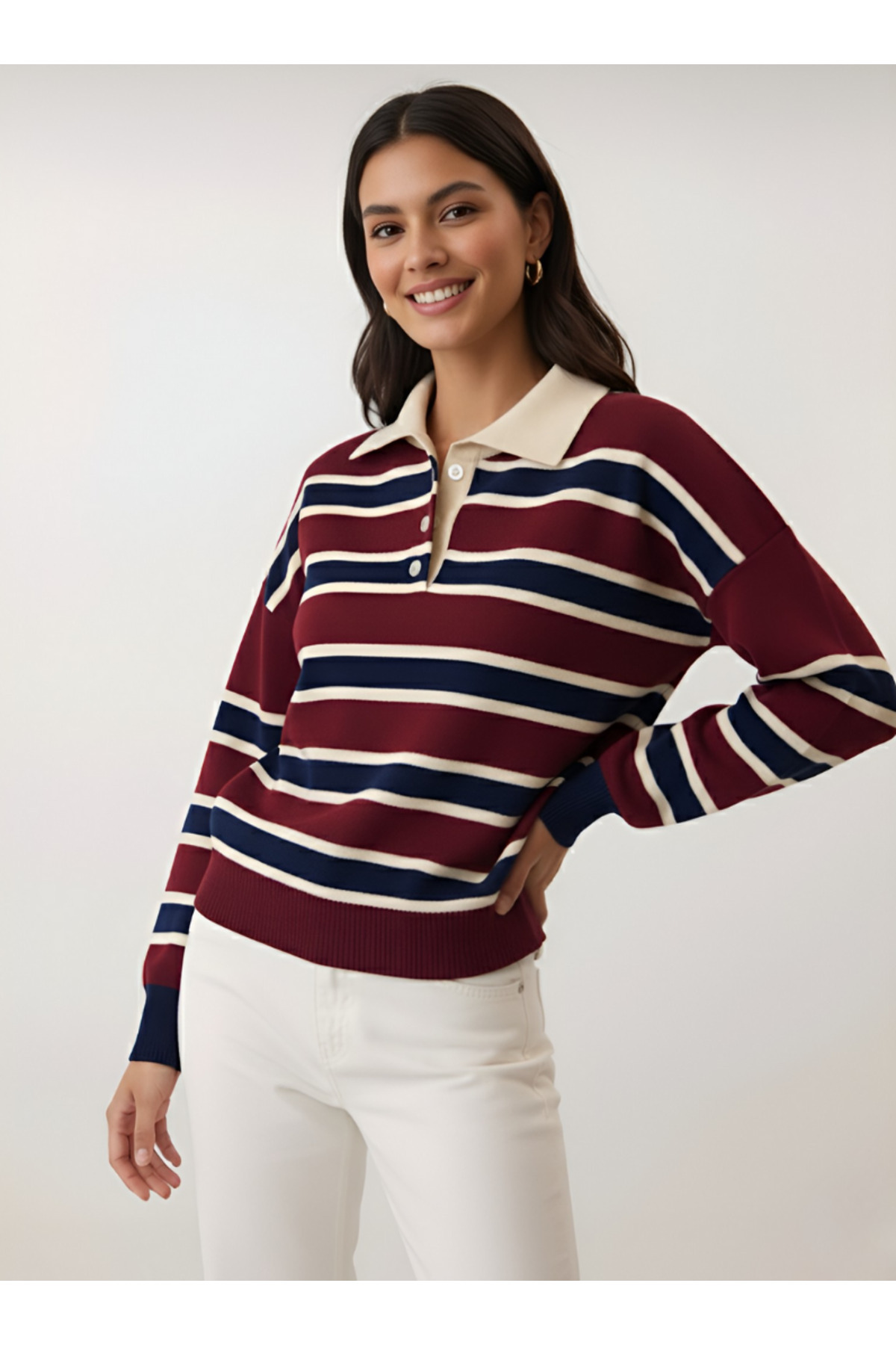 KADIN ÇİZGİLİ POLO YAKA TRİKO SWEATSHIRT KADIN ÇİZGİLİ POLO YAKA TRİKO SWEATSHIRT MC270920251033 Standart