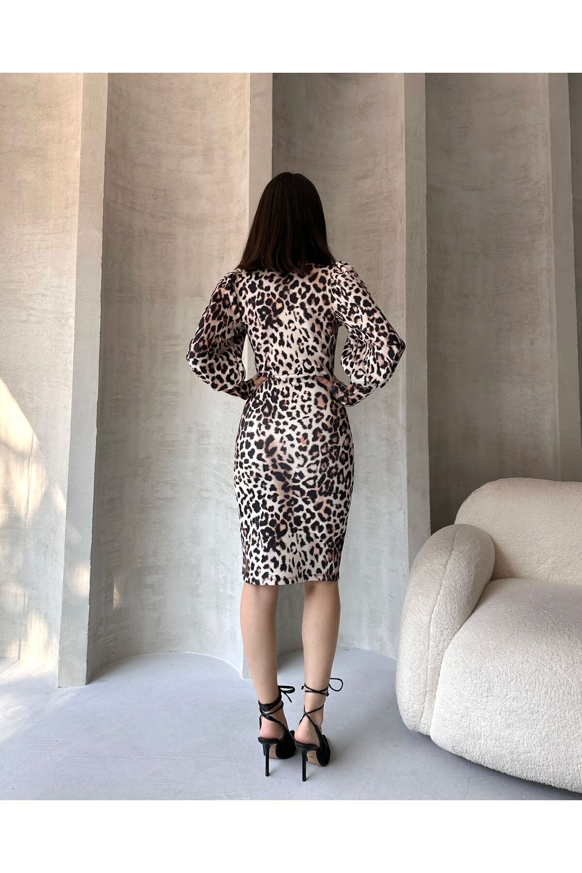 Leopar Desenli Midi Boy Elbise Leopar Desenli Midi Boy Elbise DF2149 Battal Standart
