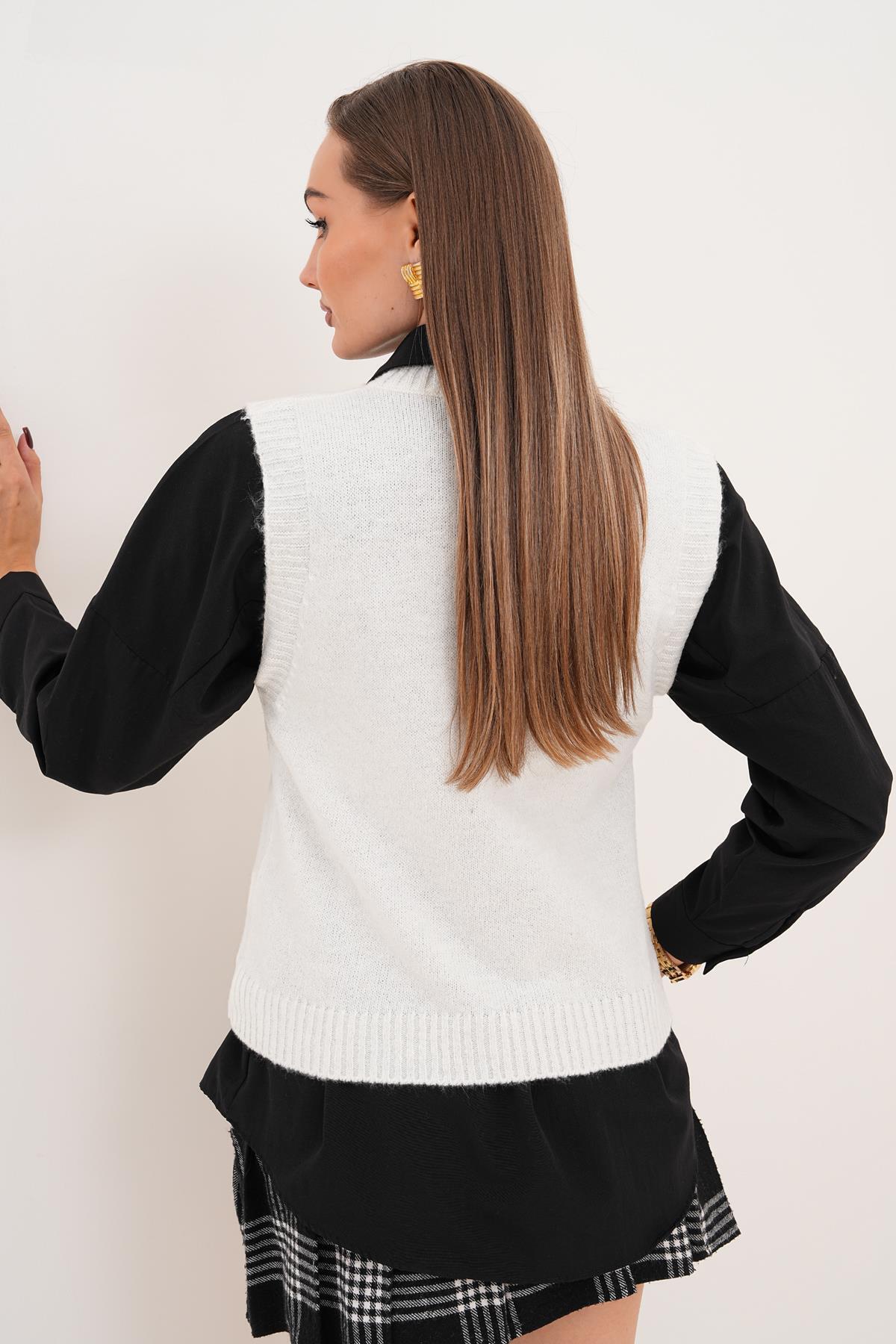 Kadın V Yaka Şardonlu Triko Örme Süveter 255169 - Kadın V Yaka Şardonlu Triko Örme Süveter 255169 - Standart