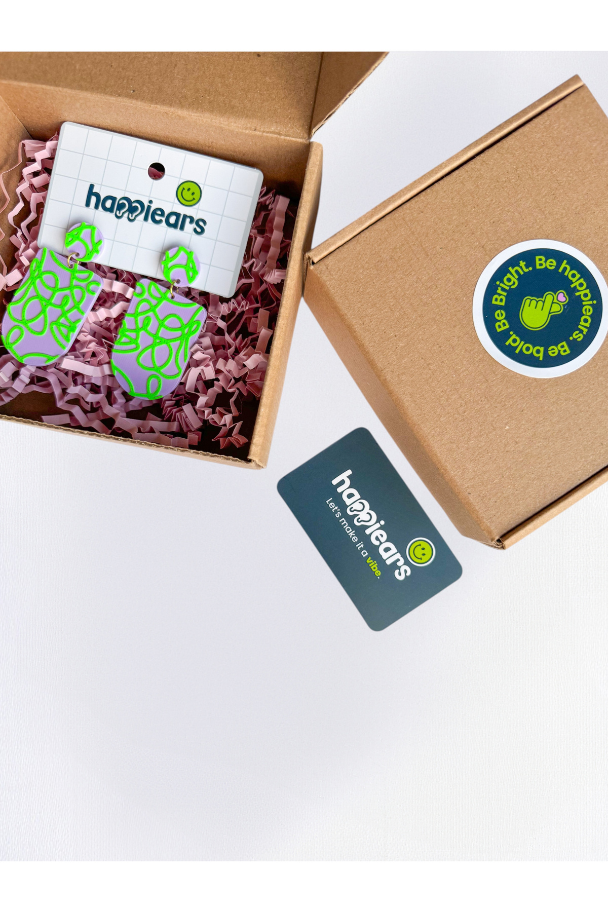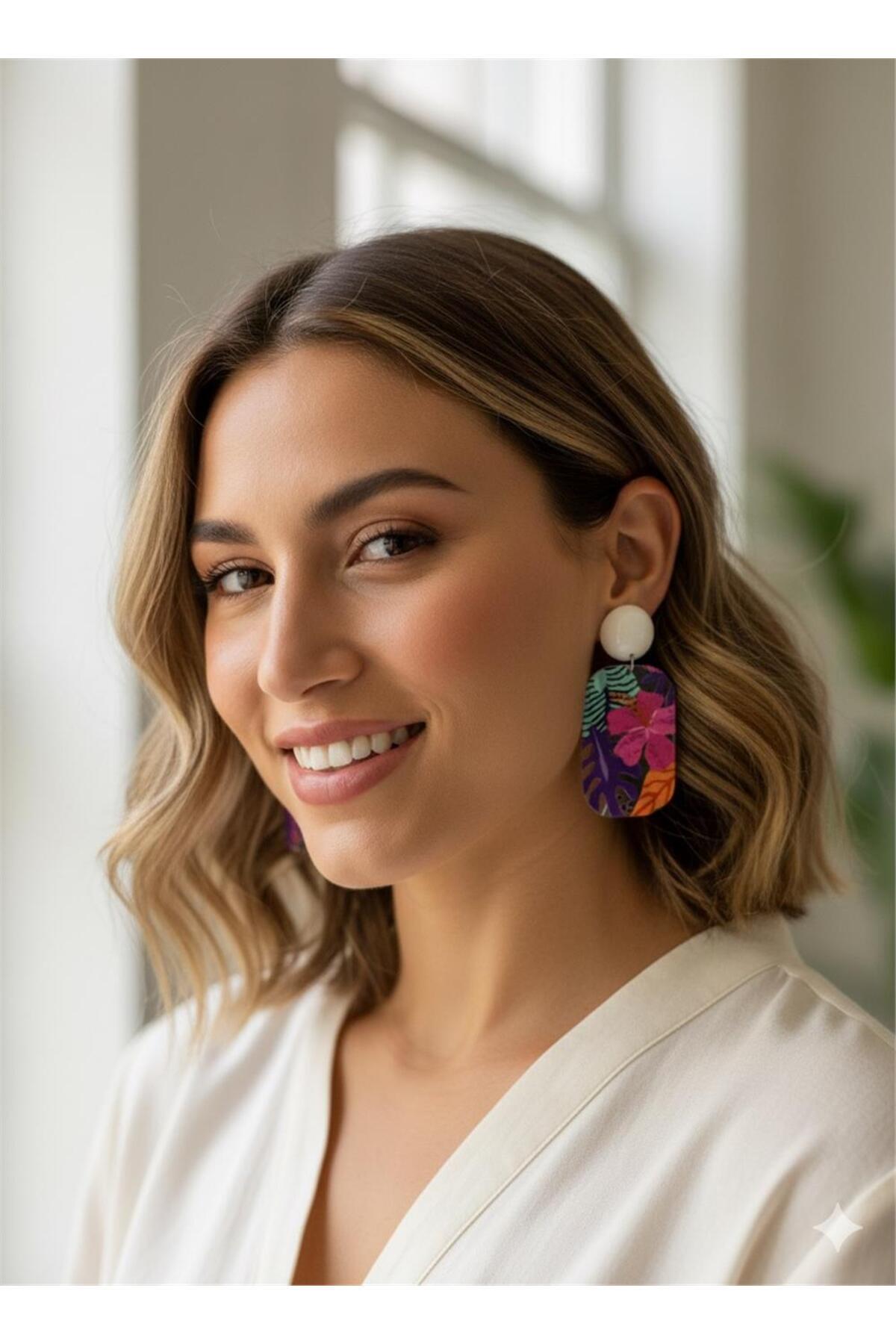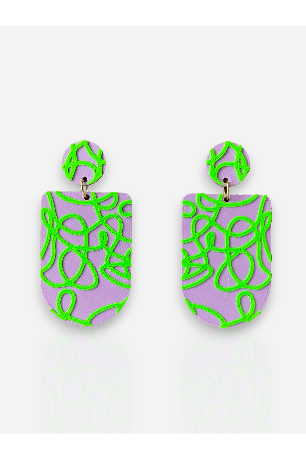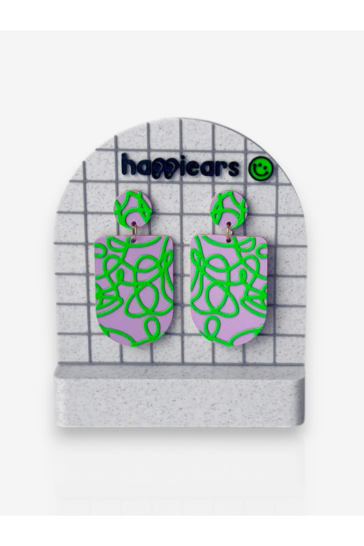 Mor Zemin Üzerine Neon Yeşil Desenli Özel Tasarım Küpe Mor Zemin Üzerine Neon Yeşil Desenli Özel Tasarım Küpe LR_KUPE_005 تک سایز