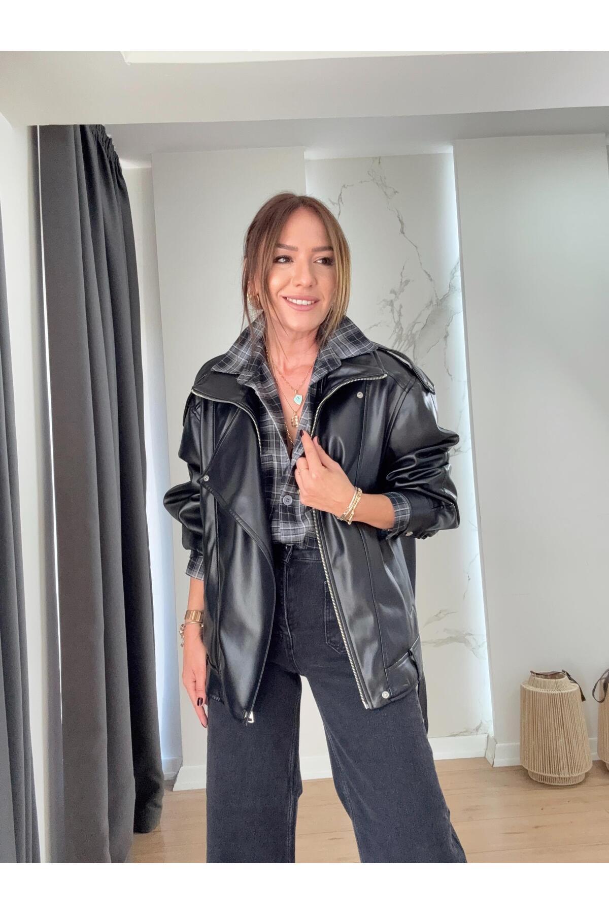 Kemer Detaylı Tasarım Deri Ceket SİYAH Kemer Detaylı Tasarım Deri Ceket SİYAH 25K-CNG-03-CKT-003 L