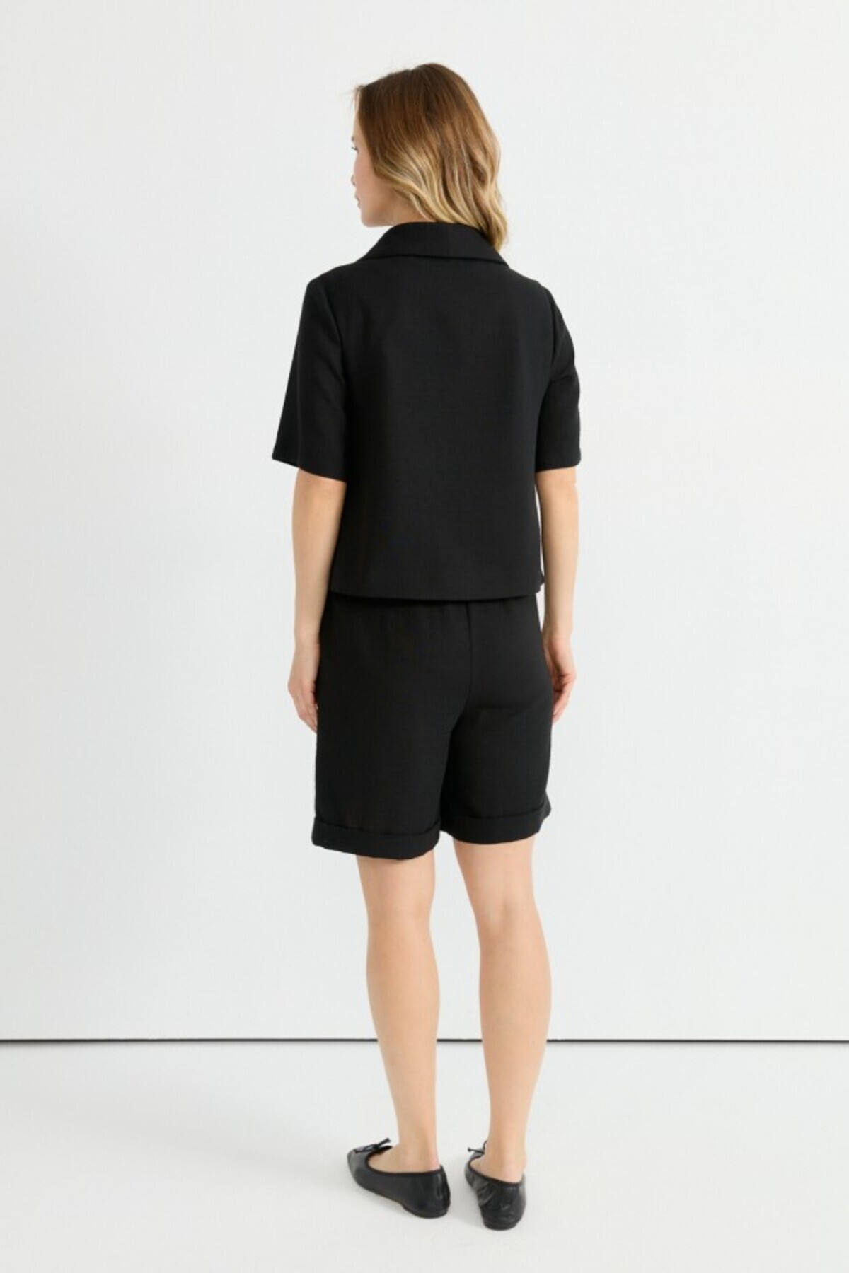 Devrik Yaka Önü Bağlamalı Kısa Kol Ceket Devrik Yaka Önü Bağlamalı Kısa Kol Ceket 25YSL1483 42