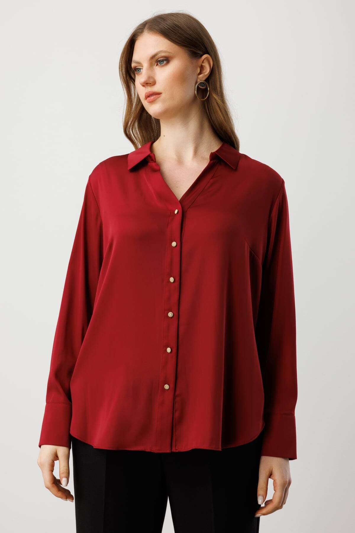Büyük Beden Şömizye Yaka Düşük Kol Triko Bluz Büyük Beden Şömizye Yaka Düşük Kol Triko Bluz 25KSL8238 48