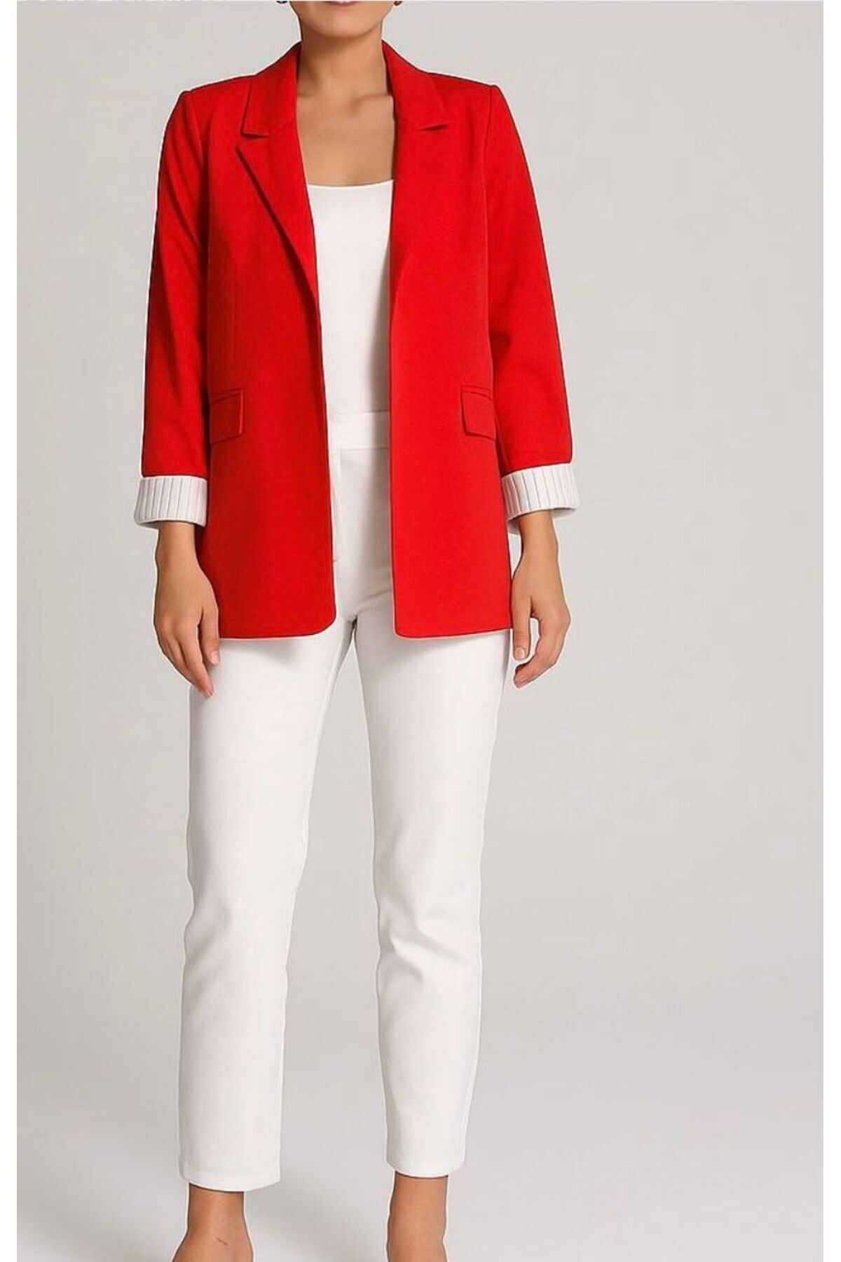 Kadın Çizgili Kol Katlamalı Vatkalı Blazer Ceket Kadın Çizgili Kol Katlamalı Vatkalı Blazer Ceket 01020 42
