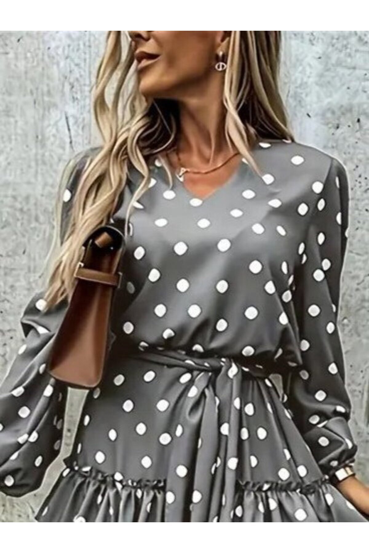 Yeni Sezon Puantiyeli Kadın Mini Elbise V Yakalı Uzun Kollu Belden Kuşaklı Yeni Sezon Puantiyeli Kadın Mini Elbise V Yakalı Uzun Kollu Belden Kuşaklı SNN-61735-MN 2XL-3XL