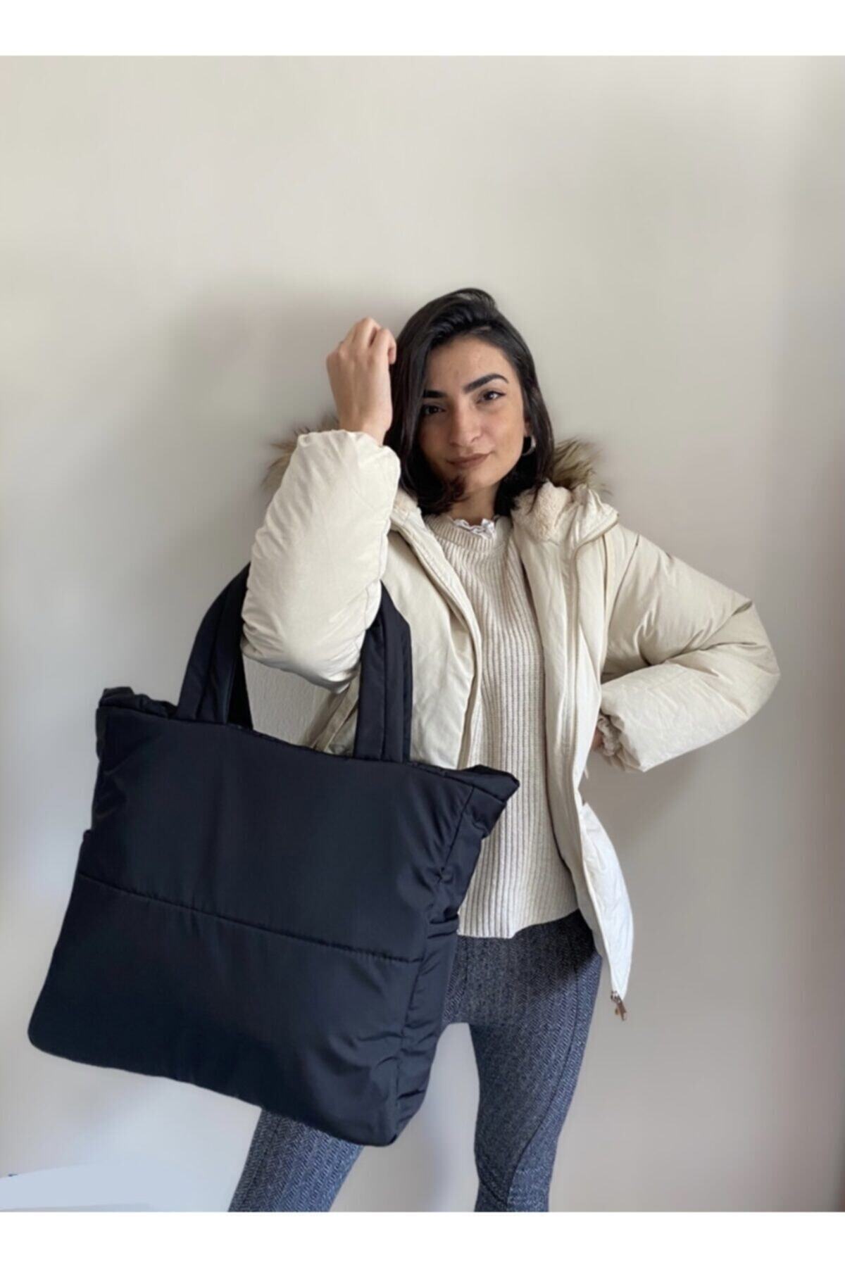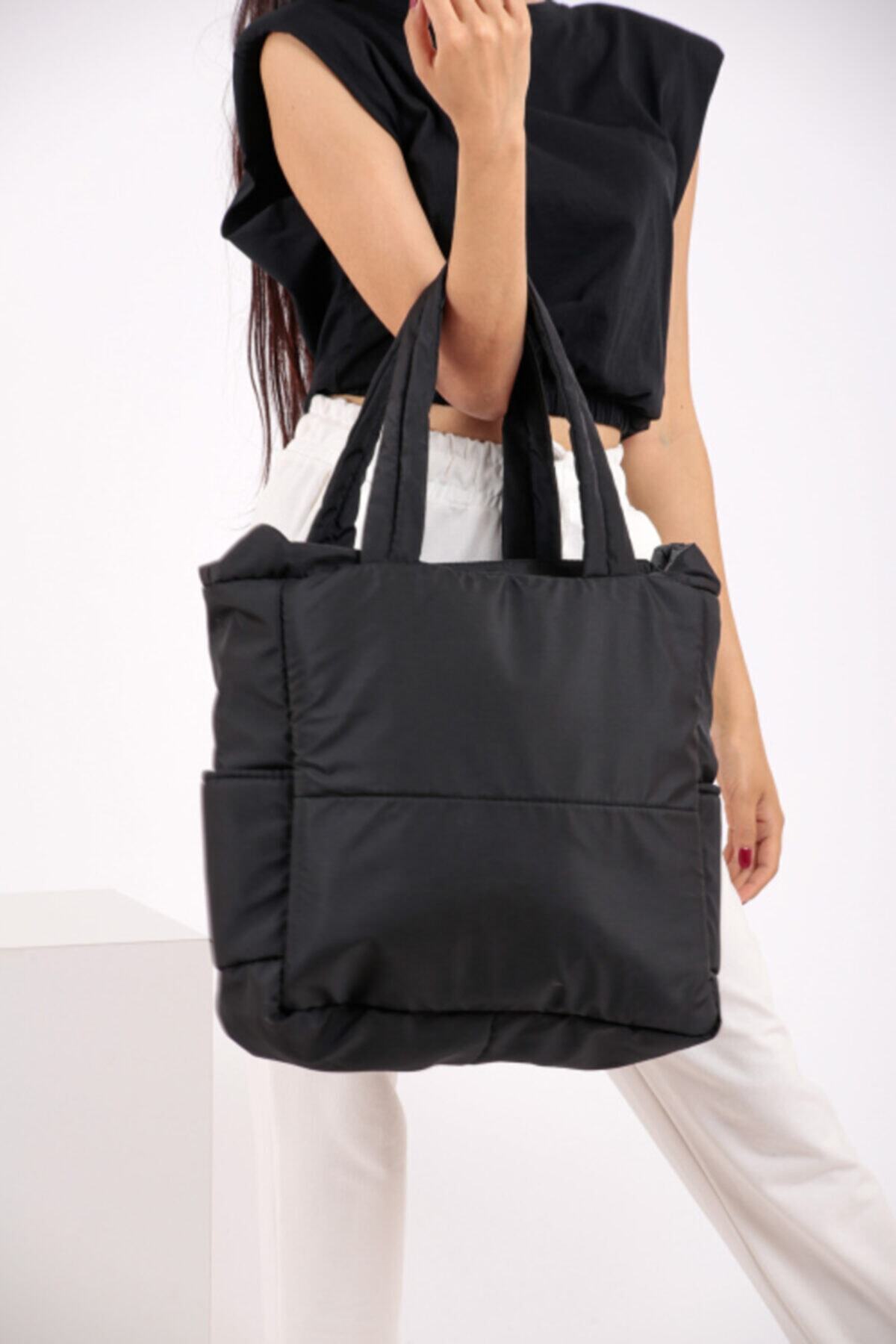 Kabartmalı Puf Kumaş Shopper Çanta Siyah Kabartmalı Puf Kumaş Shopper Çanta Siyah gezparaşüt3435 تک سایز