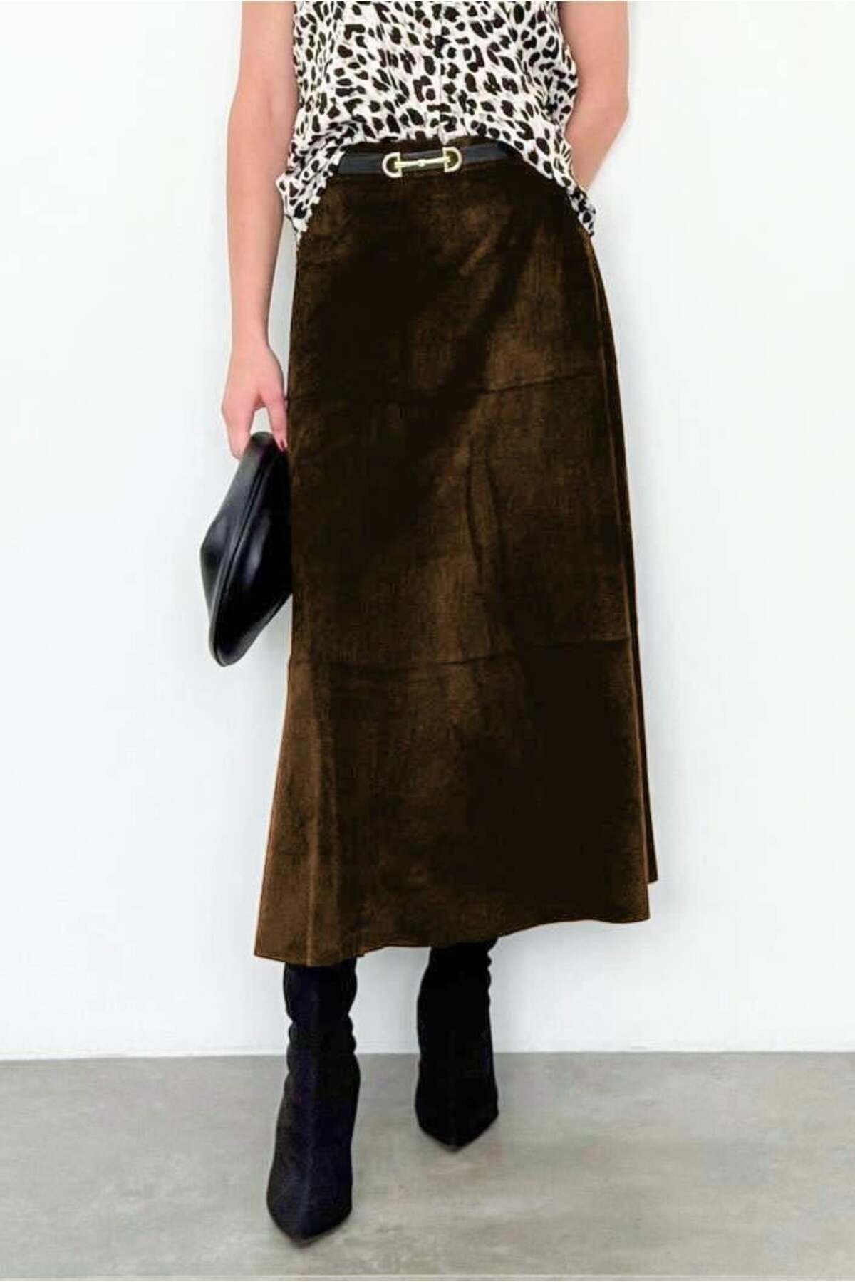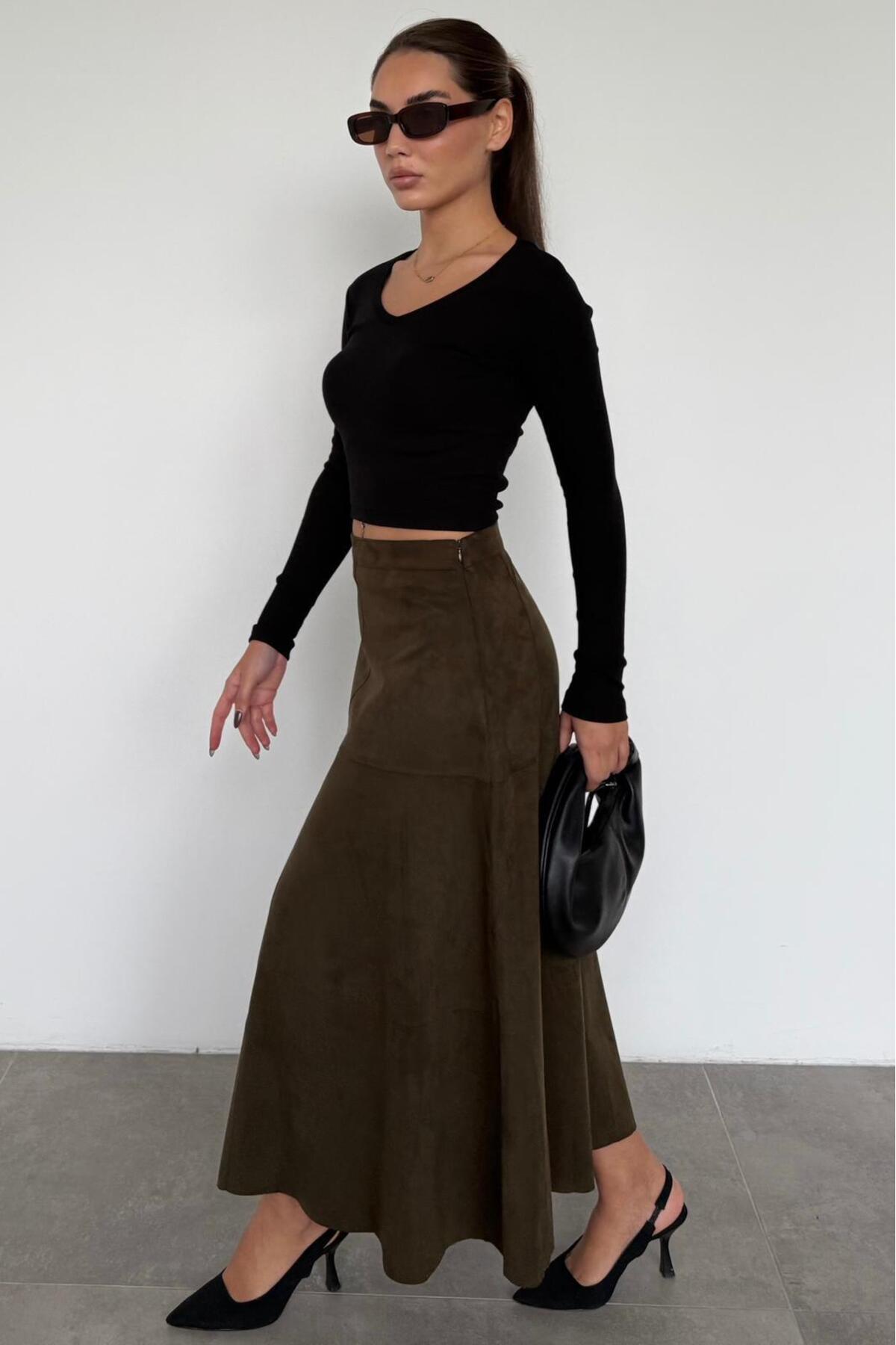 Haki Süet Uzun Etek Mg2549 Haki Süet Uzun Etek Mg2549 MG2549 L