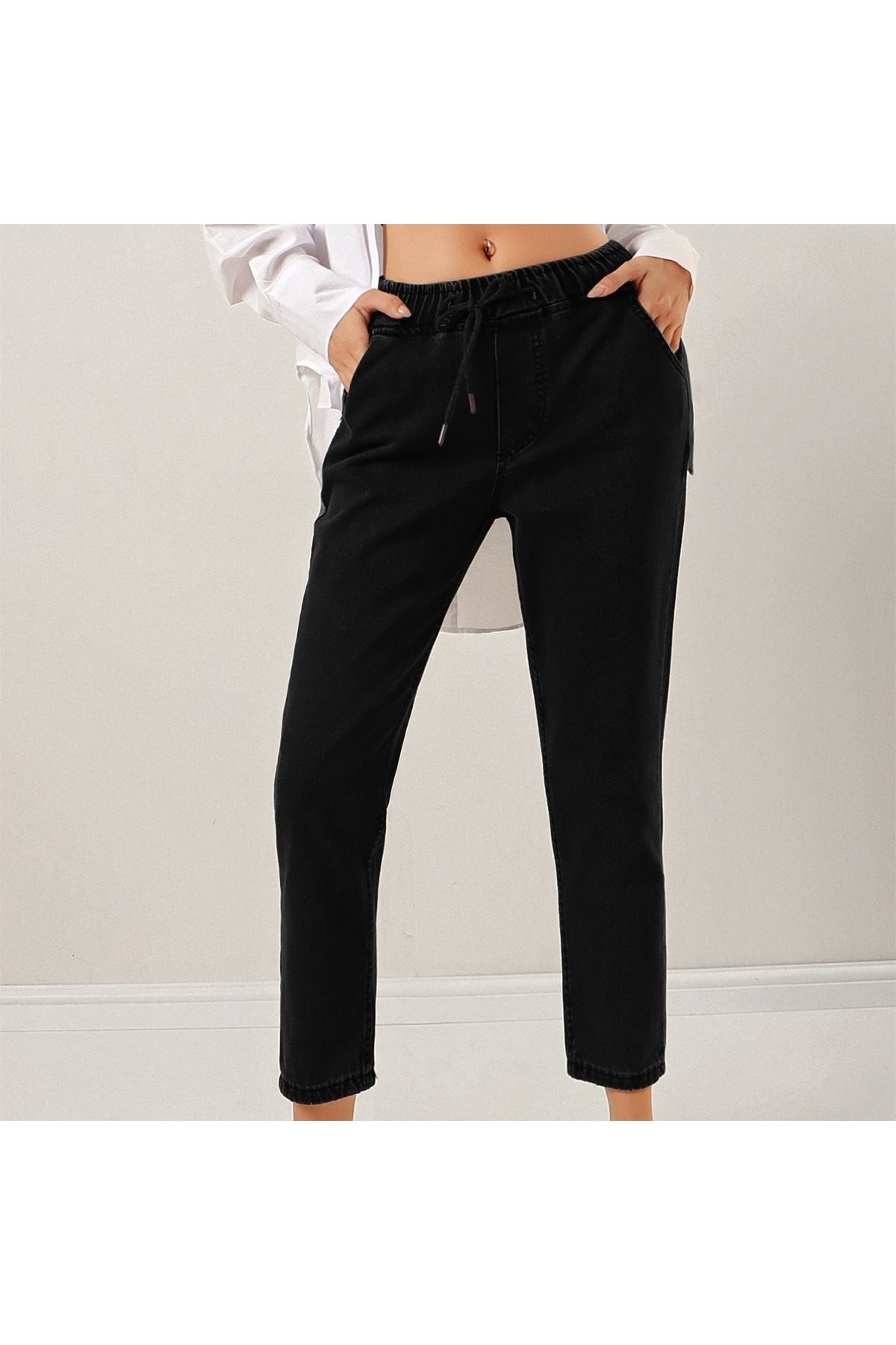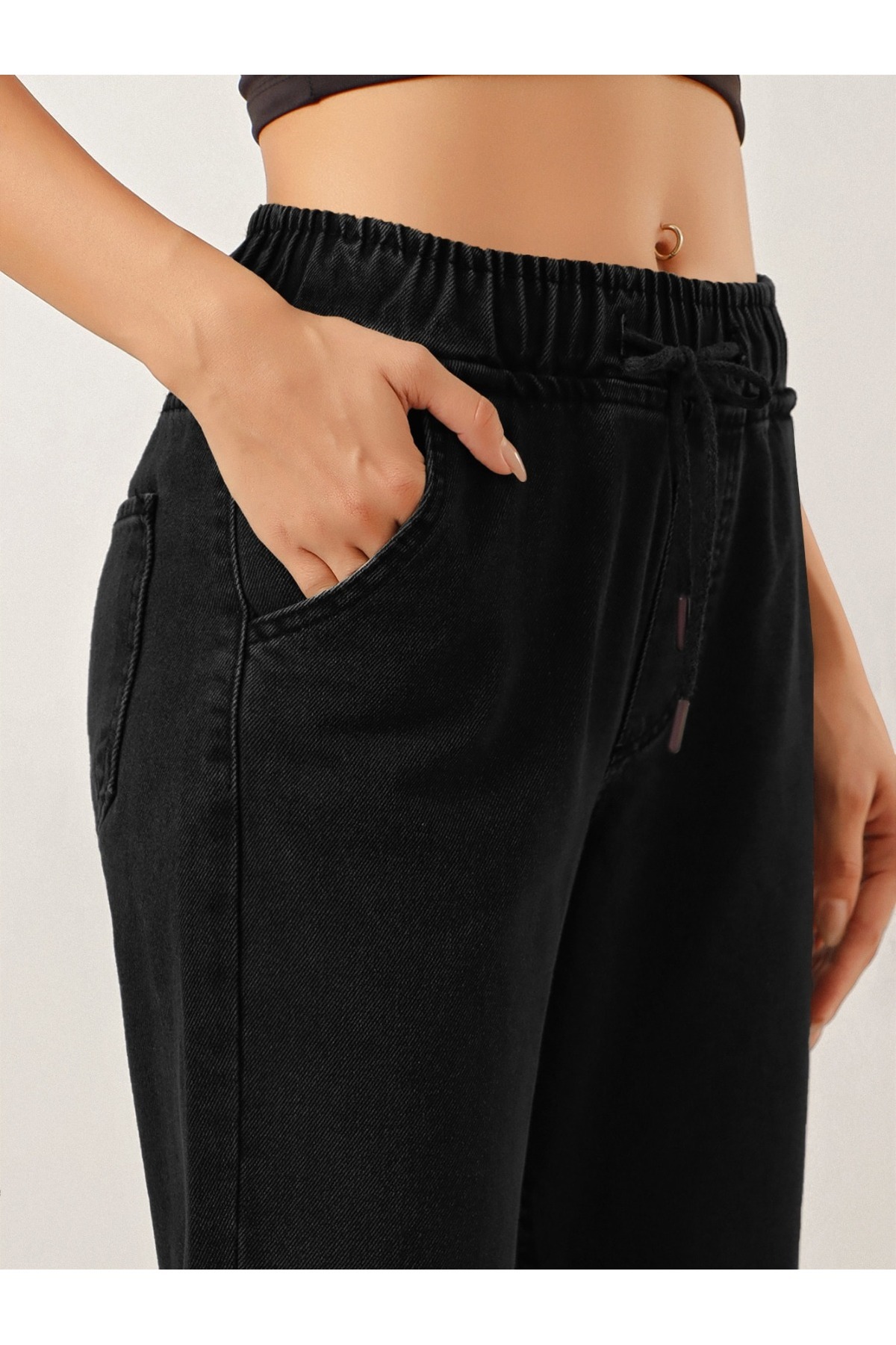 KADIN BELİ İPLİ KEMER LASTİK SİYAH MOM KOT PANTOLON KADIN BELİ İPLİ KEMER LASTİK SİYAH MOM KOT PANTOLON KN079 44