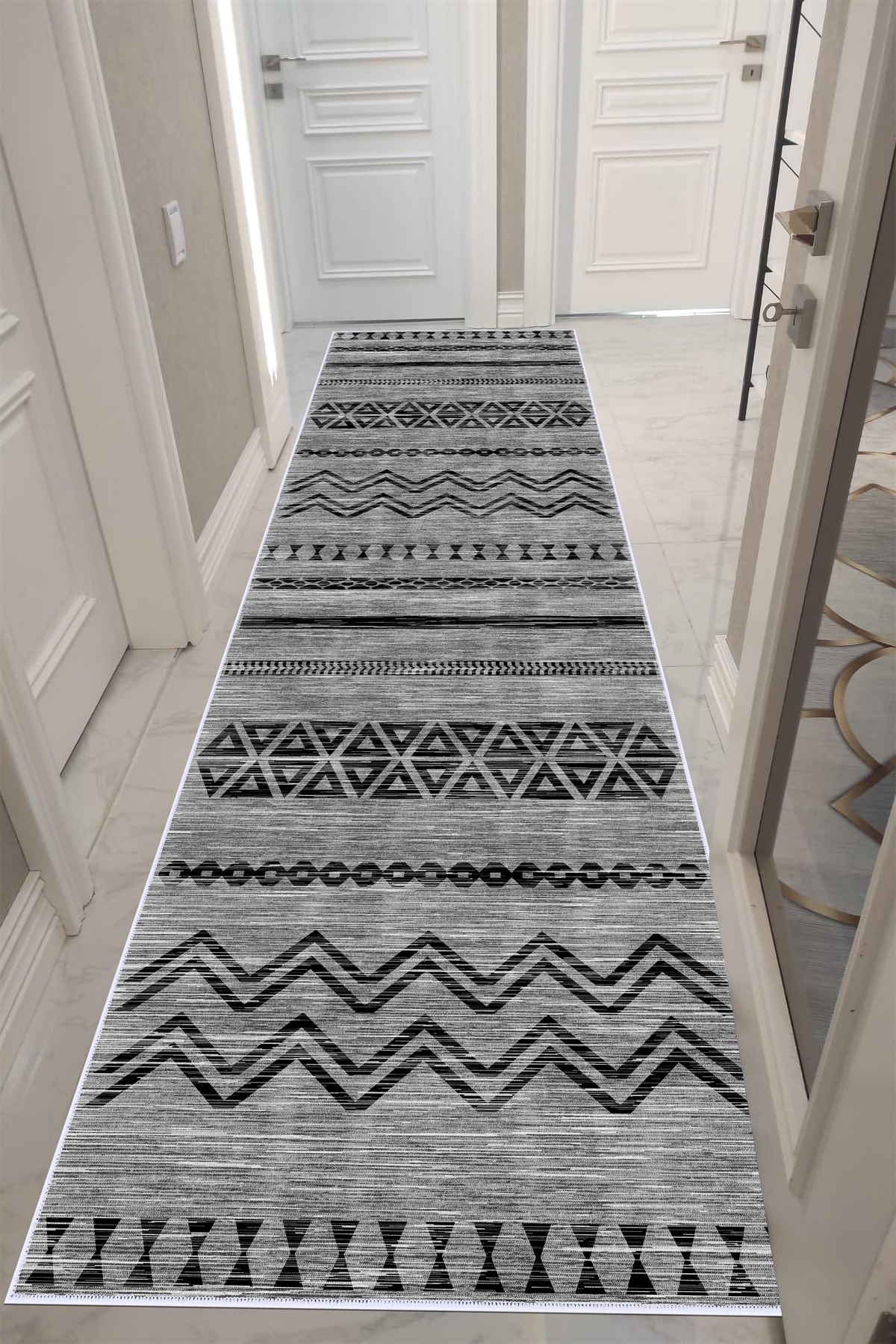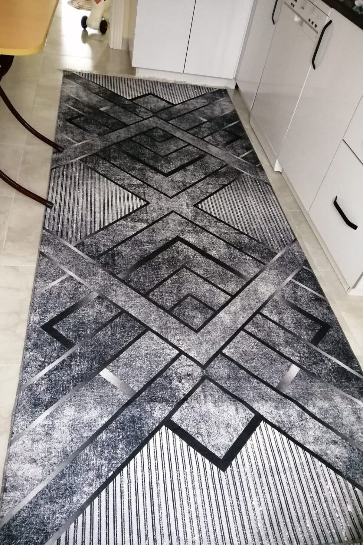 Gri Siyah Halı Mutfak Halısı Makinede Yıkanabilir Halı Kaymaz Taban Halı Gri Siyah Halı Mutfak Halısı Makinede Yıkanabilir Halı Kaymaz Taban Halı 4133 Mutfak 100 x 430