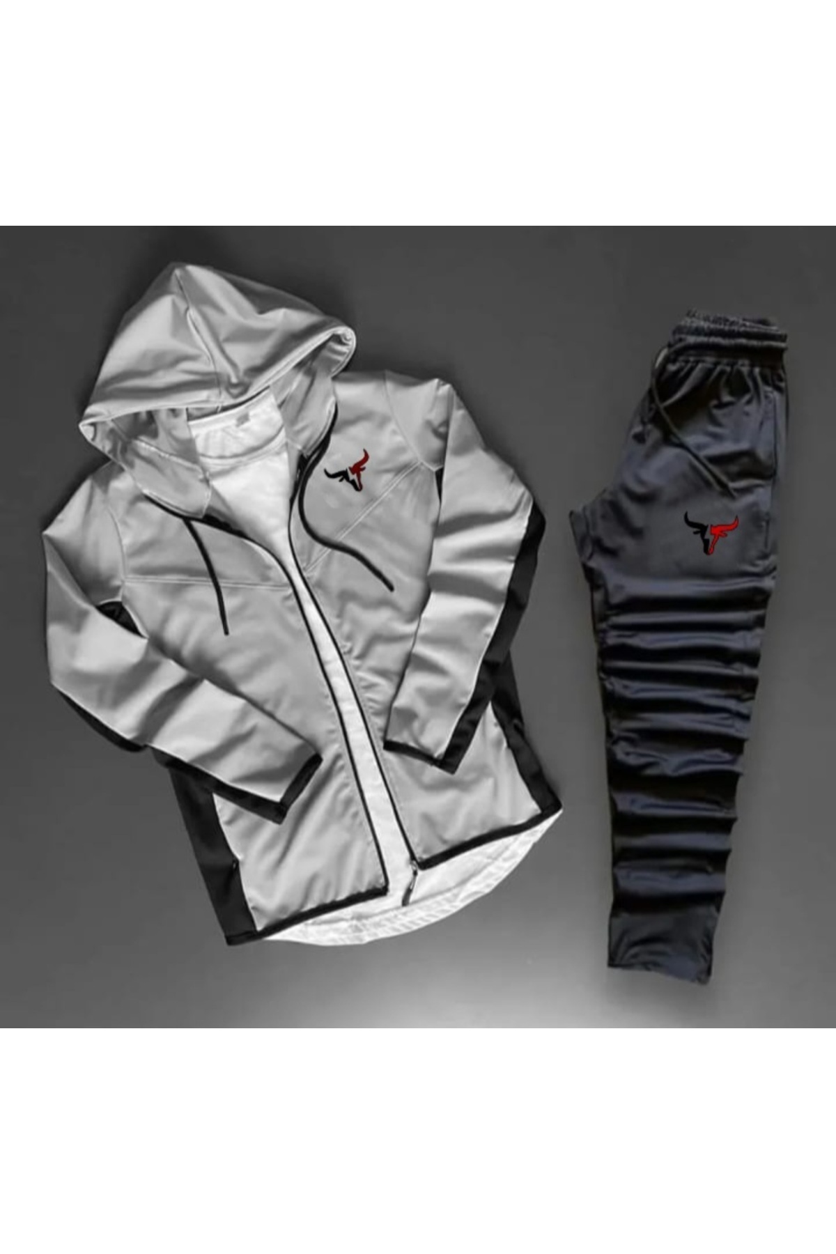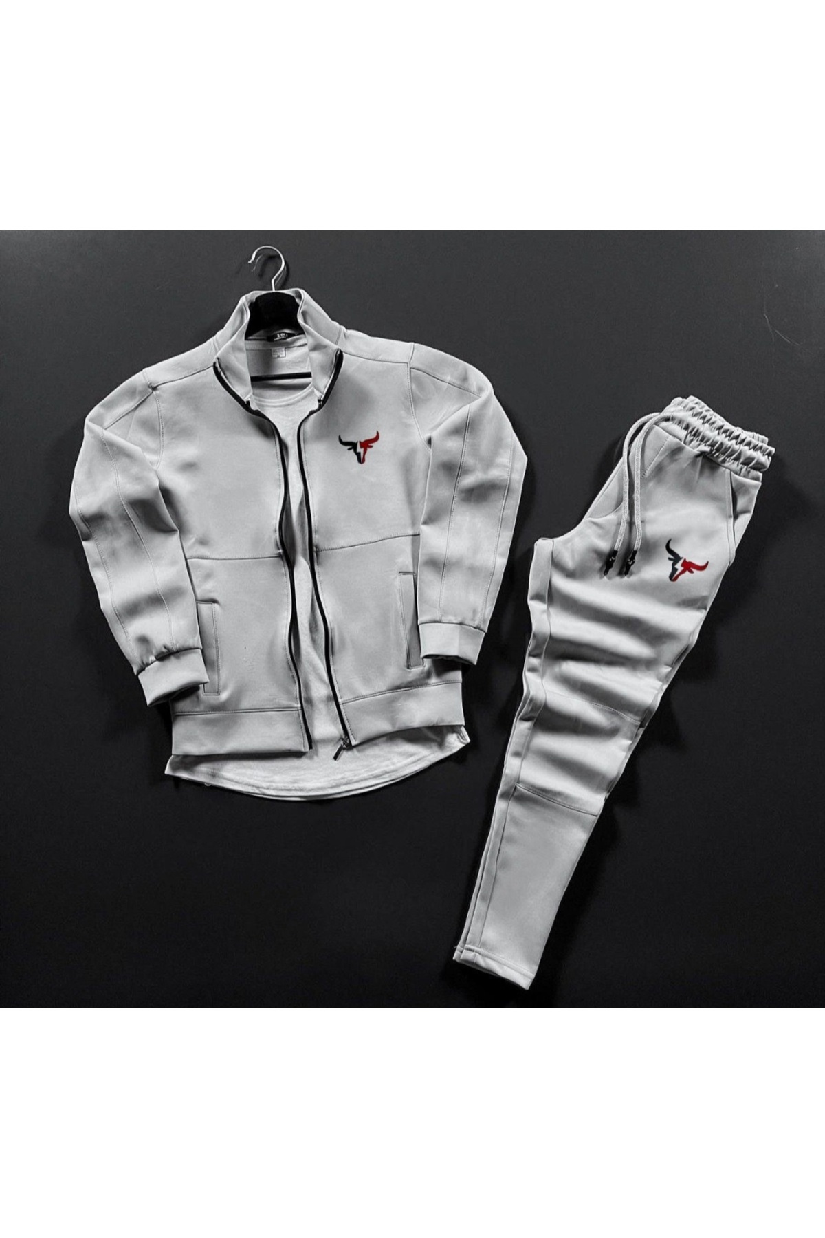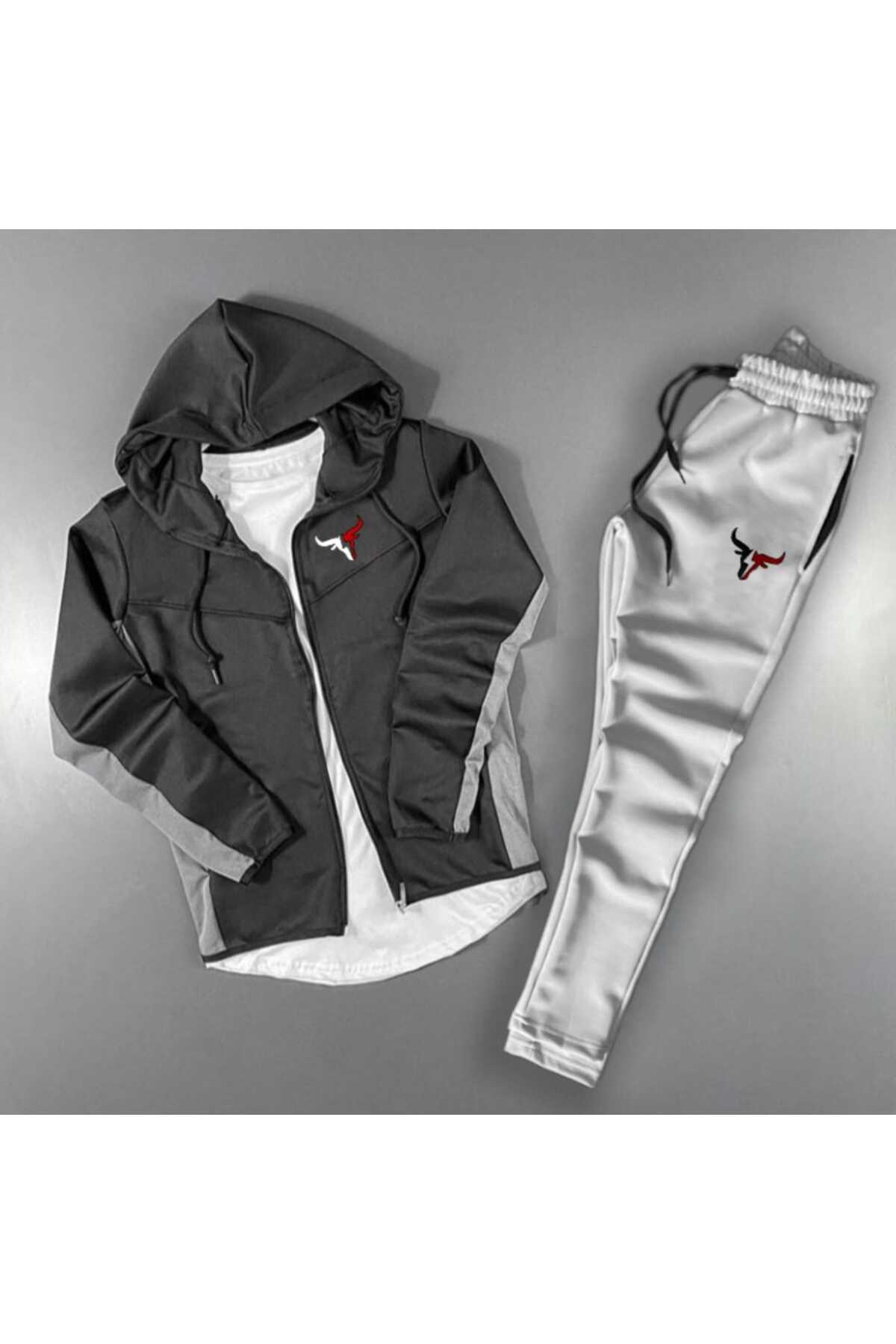 Unisex Boğa Baskılı Fermuarlı Dik Yaka Gri Siyah Scuba Takım Unisex Boğa Baskılı Fermuarlı Dik Yaka Gri Siyah Scuba Takım byfour4000 XL