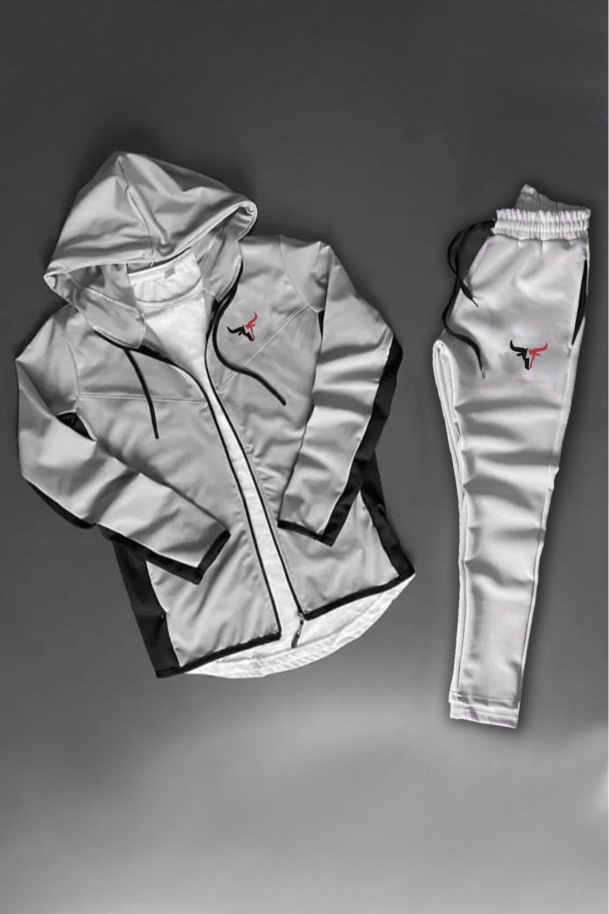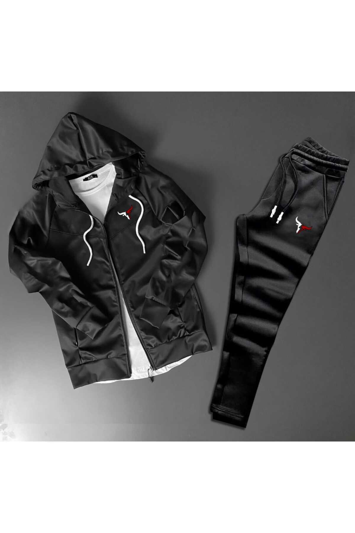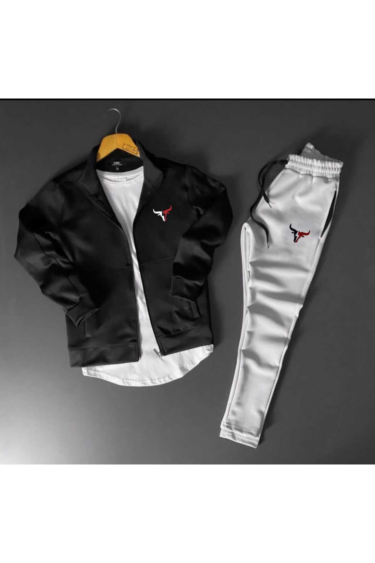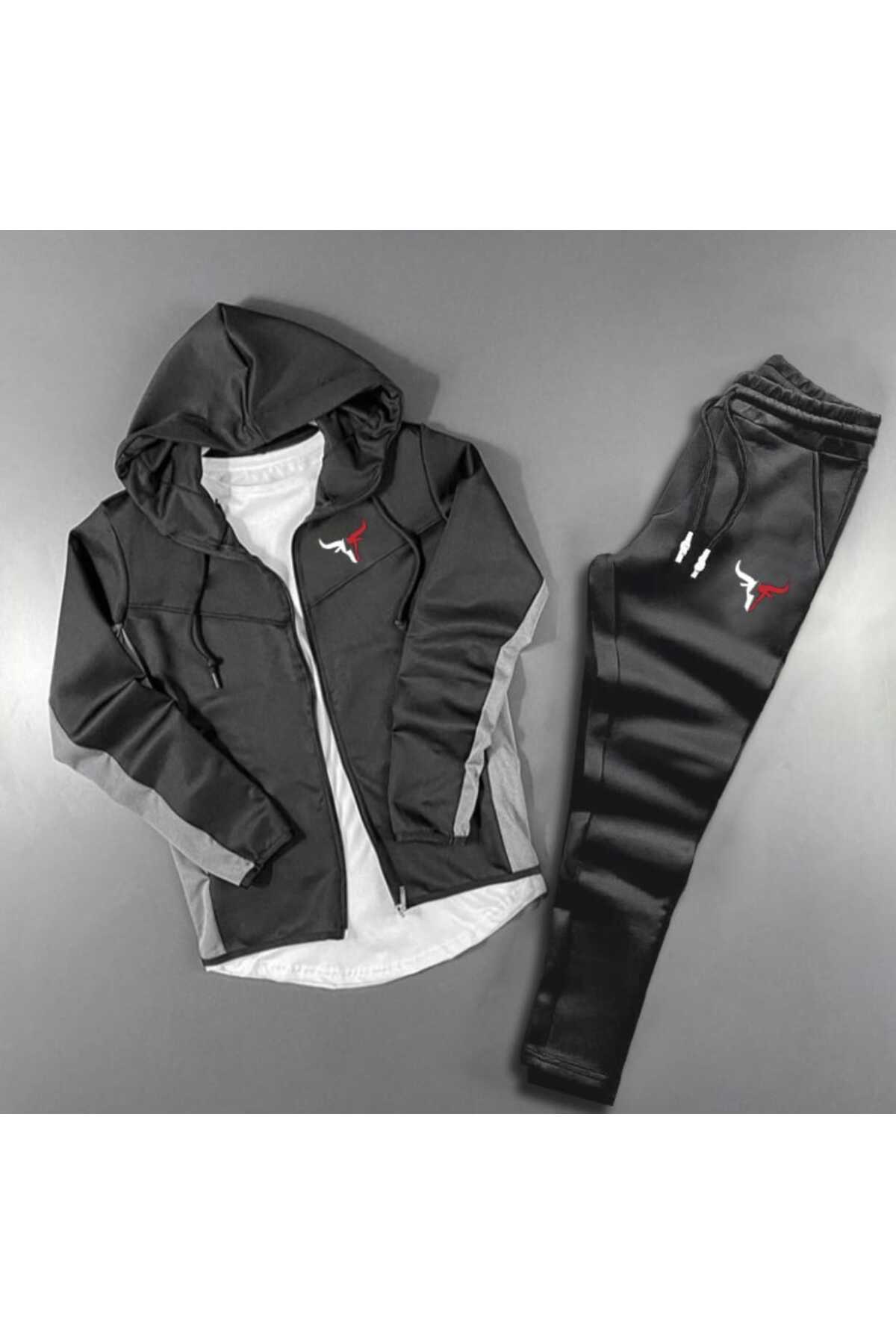 Unisex Boğa Baskılı Fermuarlı Dik Yaka Gri Siyah Scuba Takım Unisex Boğa Baskılı Fermuarlı Dik Yaka Gri Siyah Scuba Takım byfour4000 XL