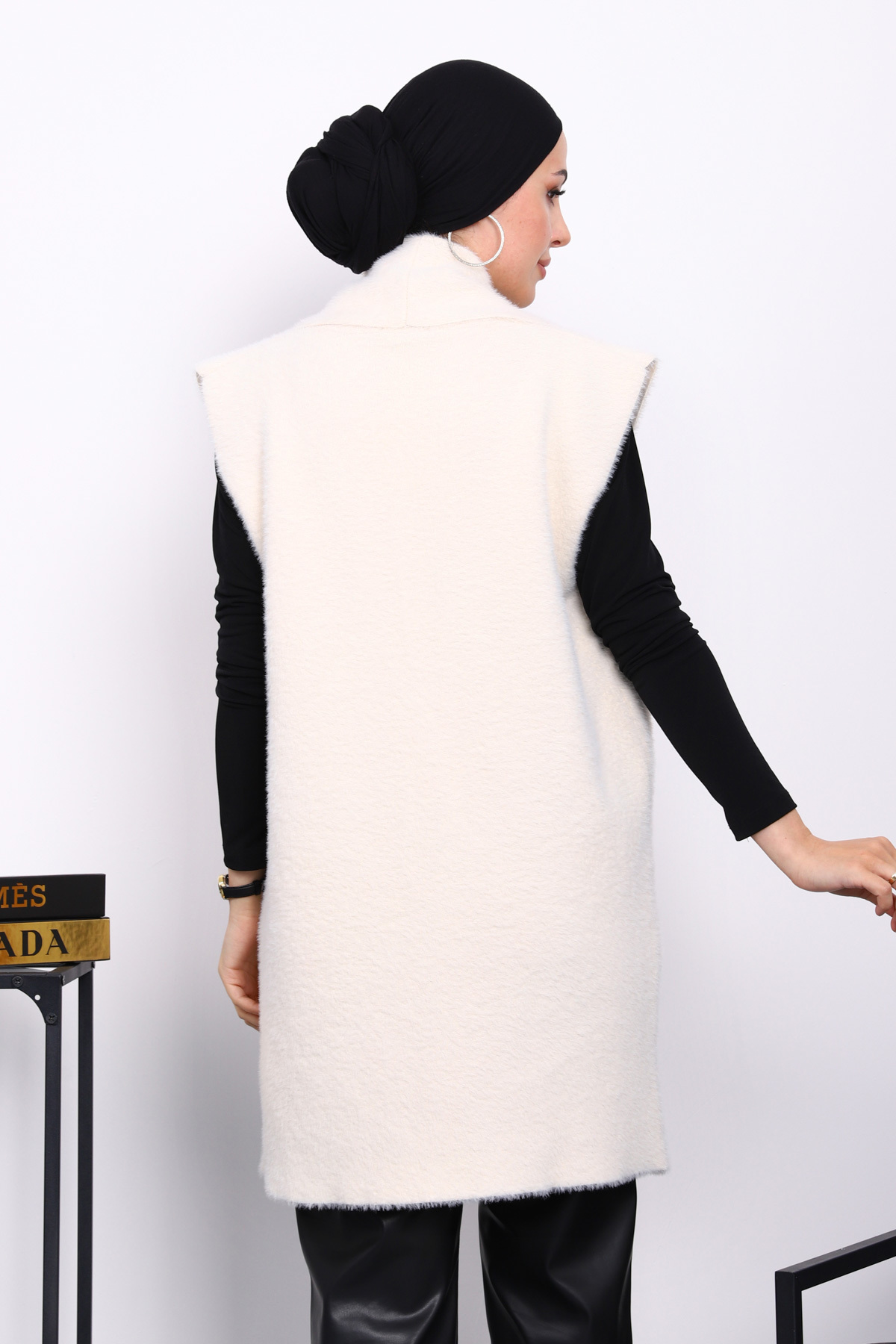 Krem Ön Bağlamalı Cepli Angora Yumoş Yelek Krem Ön Bağlamalı Cepli Angora Yumoş Yelek IMJ007487 تک سایز