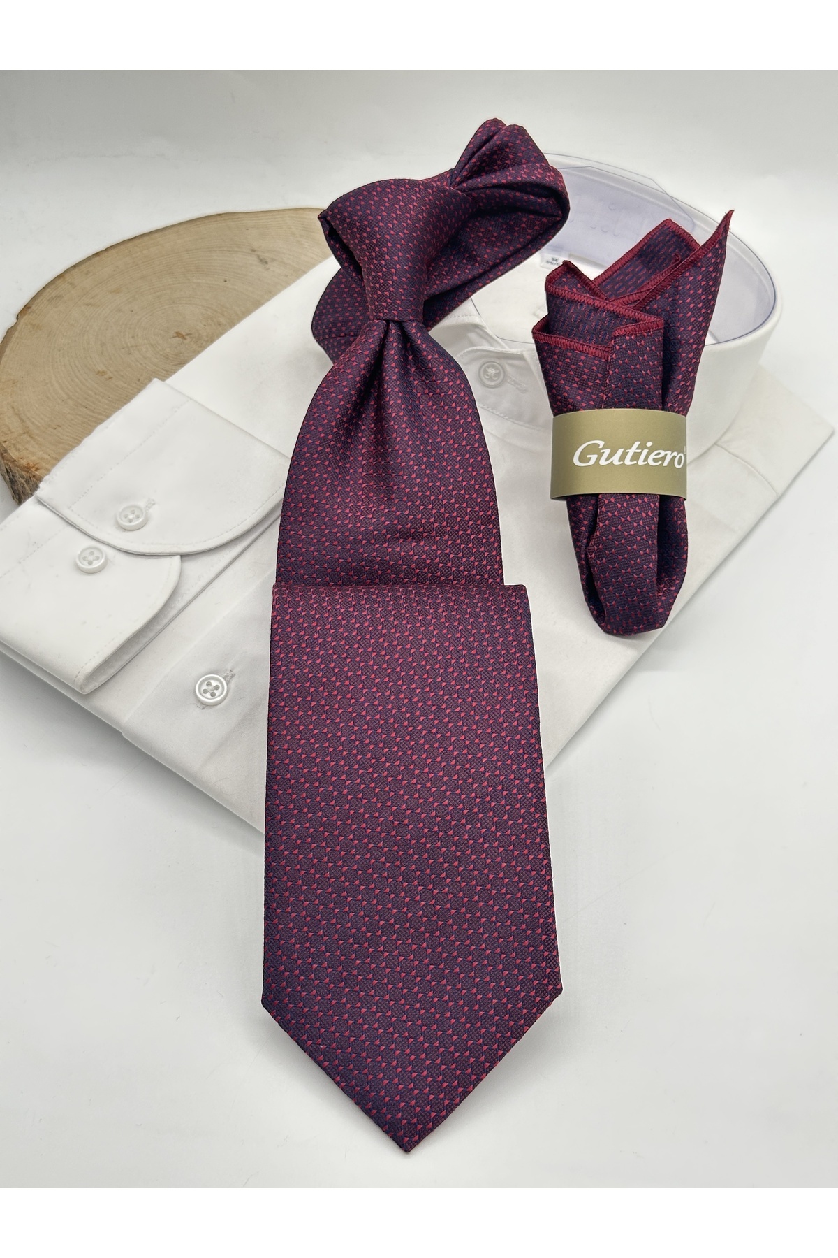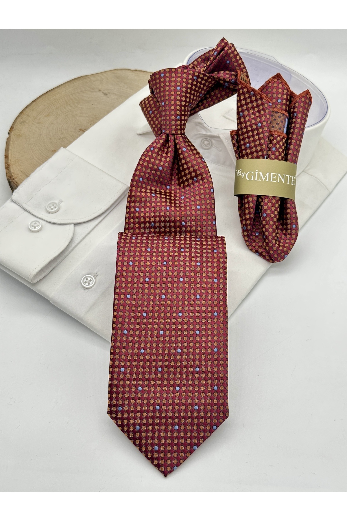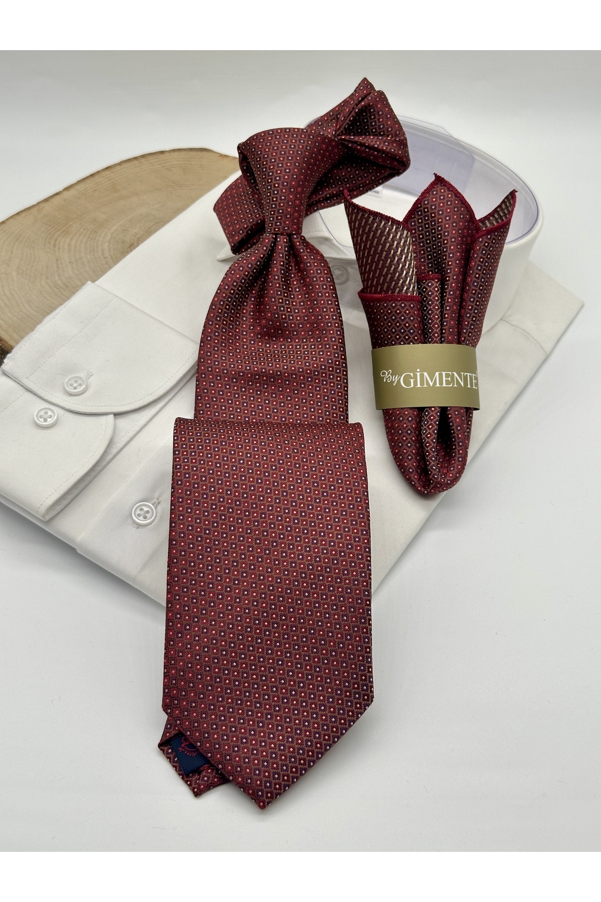 Kırmızı Desenli Mendilli Klasik Kravat Kırmızı Desenli Mendilli Klasik Kravat KK7-628 تک سایز