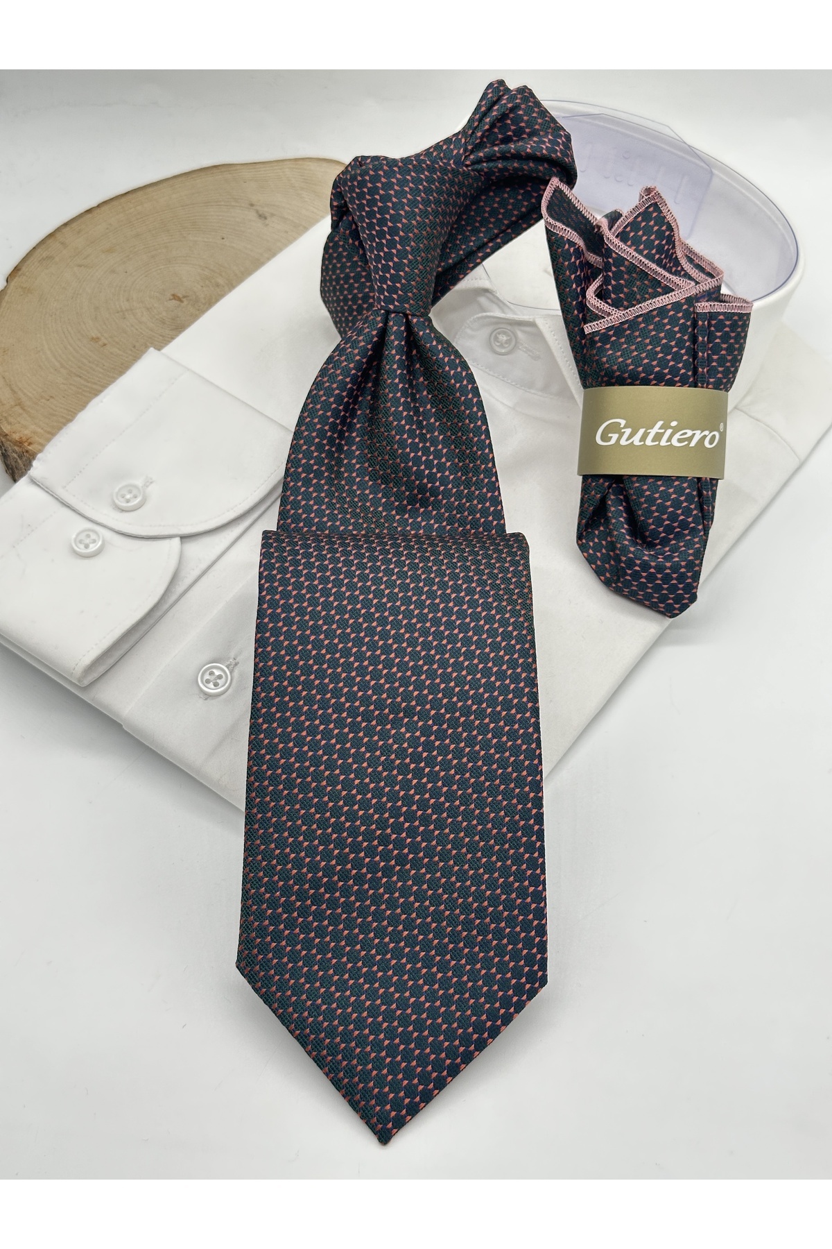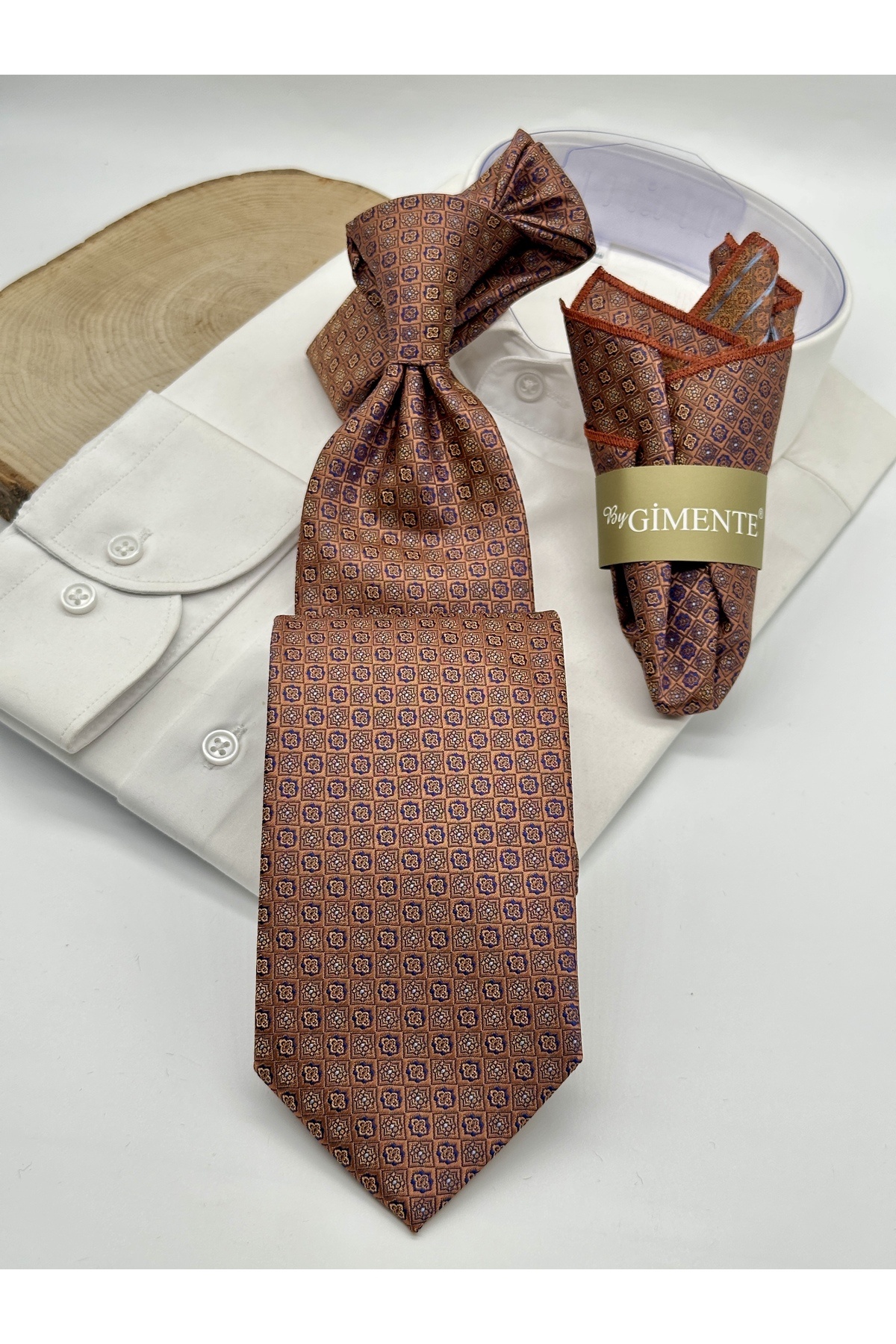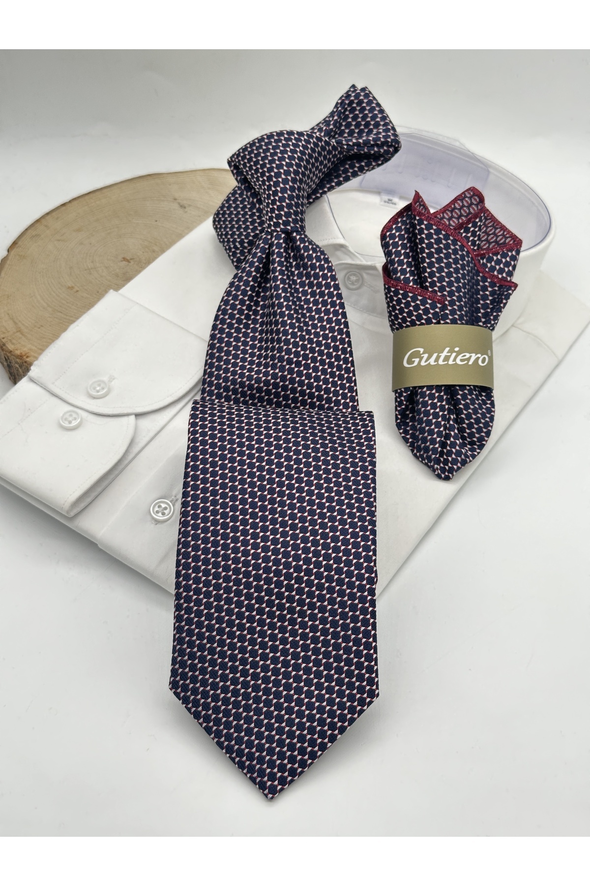Kırmızı Desenli Mendilli Klasik Kravat Kırmızı Desenli Mendilli Klasik Kravat KK7-628 تک سایز