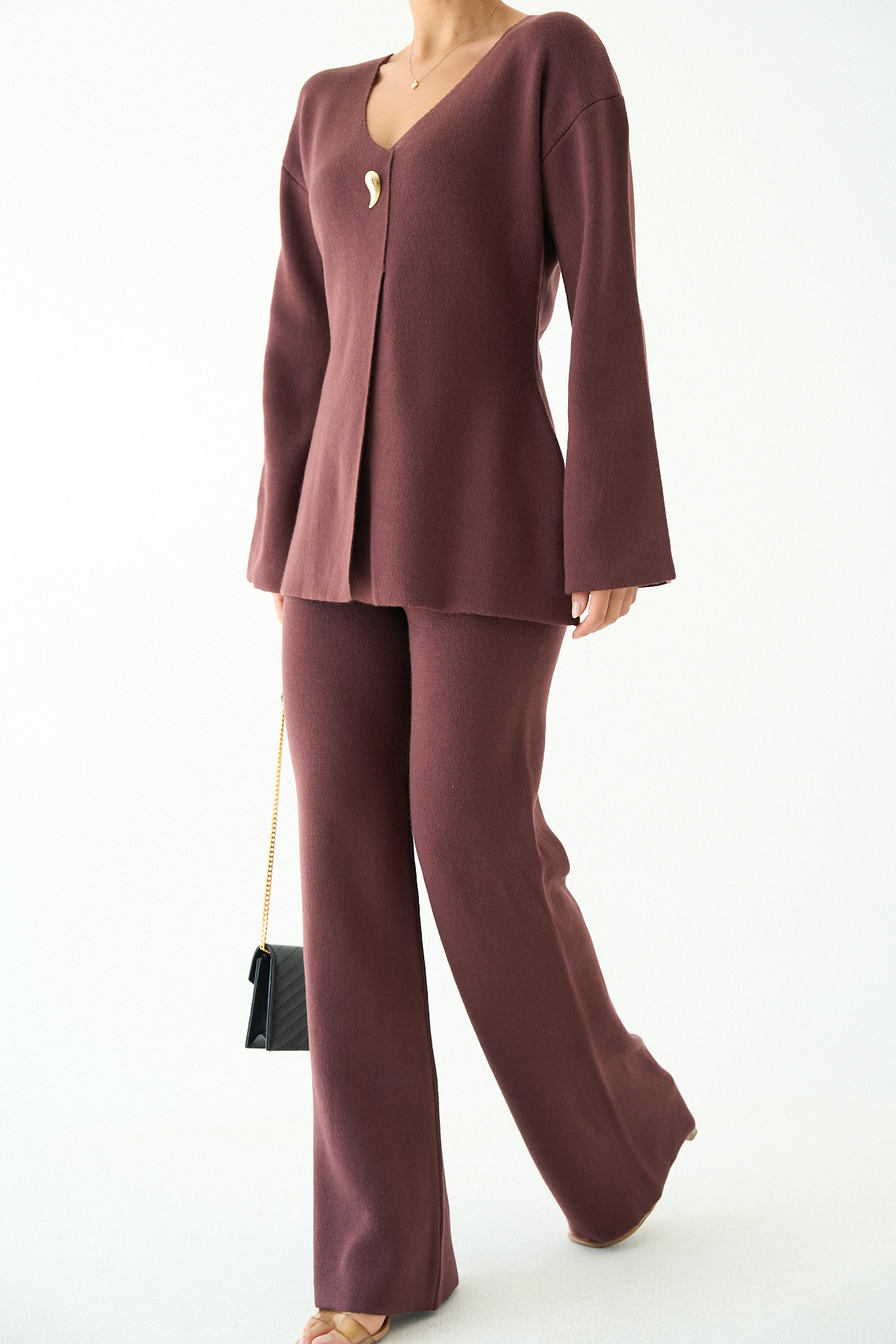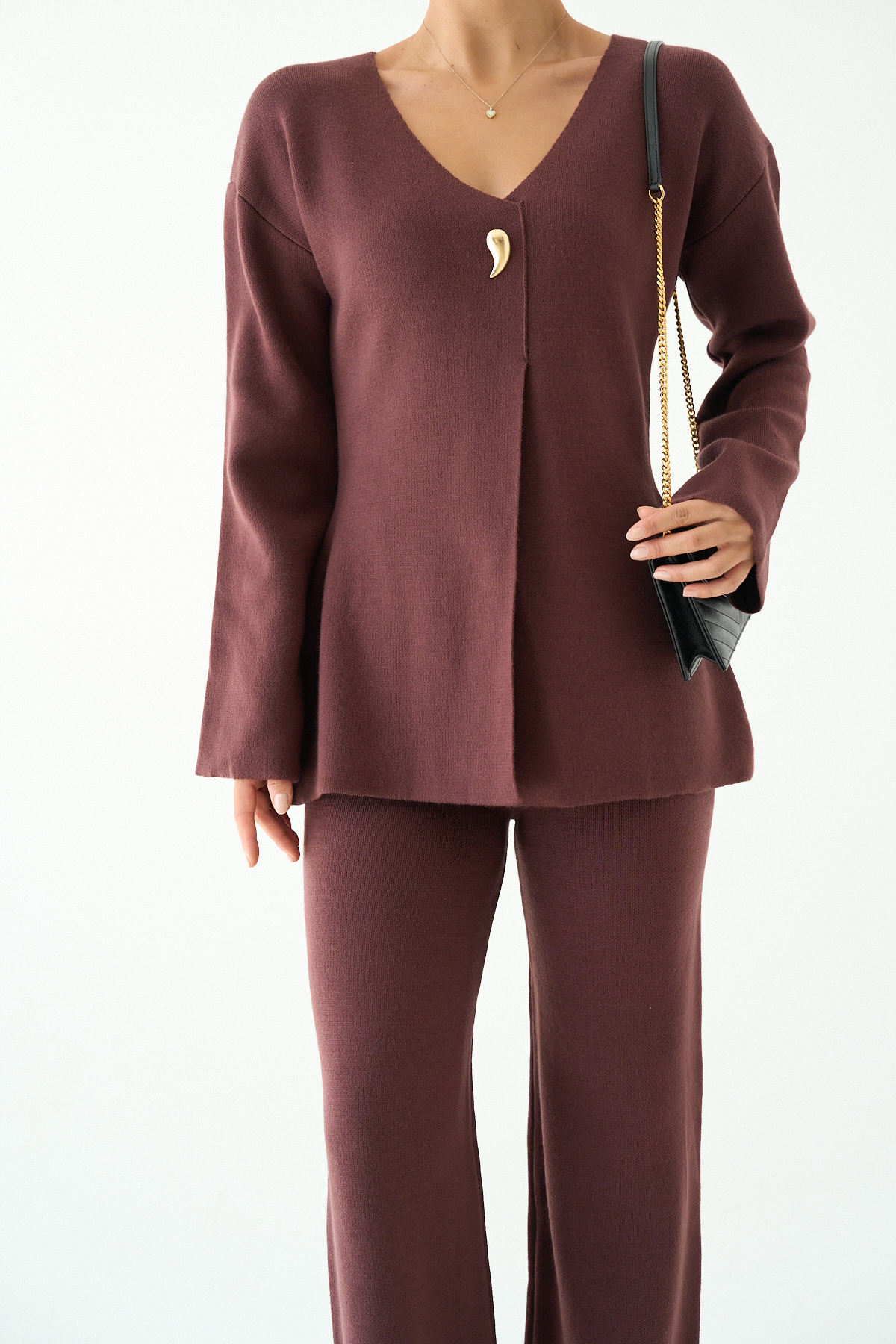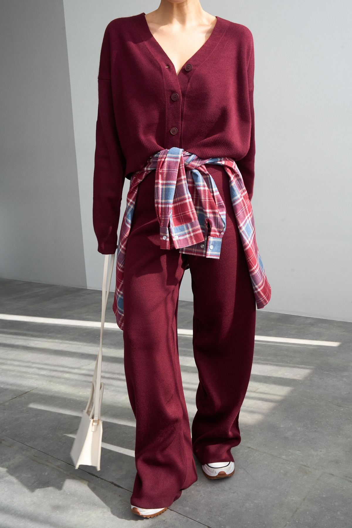 Kadın Cherry V Yaka Düğme Detaylı Hırka Geniş Kesim Pantolon Triko Takım Kadın Cherry V Yaka Düğme Detaylı Hırka Geniş Kesim Pantolon Triko Takım TT251017 Standart