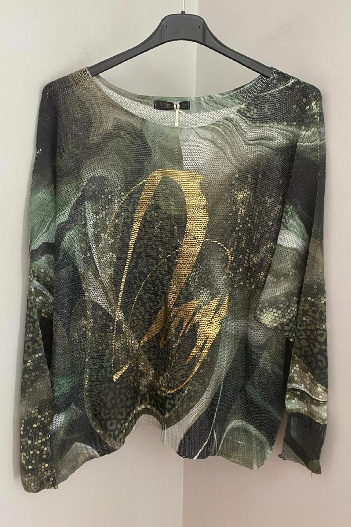 Kadın Italyan Haki Alev Desenli Varak Detaylı Yarasa Kol Merserize Bluz Kazak Kadın Italyan Haki Alev Desenli Varak Detaylı Yarasa Kol Merserize Bluz Kazak 334563-26-PARKMODA Standart