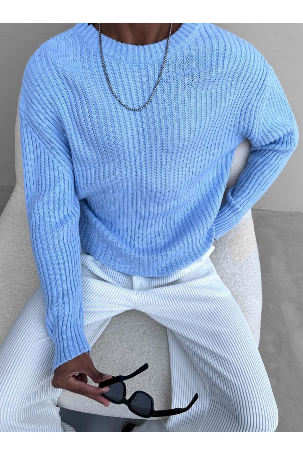 Bebe Mavisi Bisiklet Yaka Fitilli Oversize Triko Kazak Bebe Mavisi Bisiklet Yaka Fitilli Oversize Triko Kazak HF0043-MH-K XL