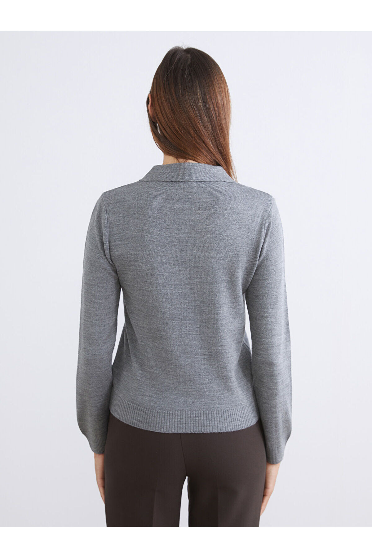 Polo Yaka Kadın Triko Kazak Polo Yaka Kadın Triko Kazak W5MD34Z8-D3A XL